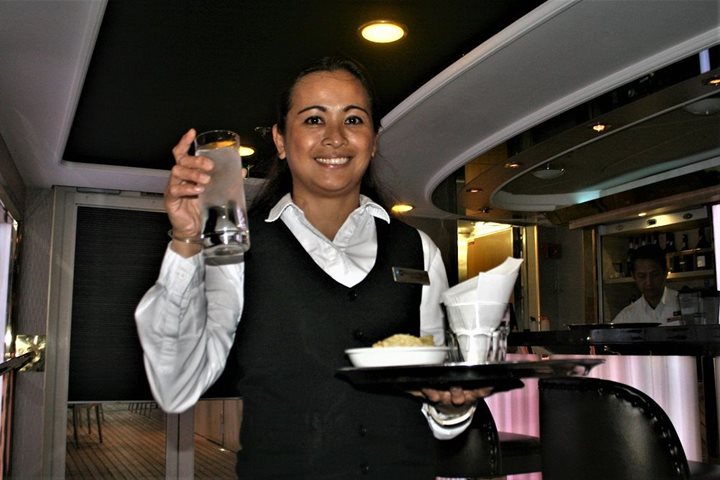 After a hot morning, most were eager to cool down and enjoy the selection of water sports on offer, which included snorkeling, stand-up paddleboarding, and kayaking. The corals and marine life were easily accessible from the snorkel platform. Conditions were perfect with no current and great visibility allowing everyone to enjoy. And our masterful undersea specialist dove her way down to investigate the deeper reefs for our later enjoyment.