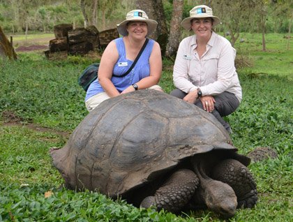 As Grosvenor Teacher Fellows on board the National Geographic Endeavour for this expedition, we (Shasta Bray and Rebecca Detrich) were particularly excited about the activities of the day. Along with our fellow guests, we spent the morning exploring the Galapagos National Park Tortoise Rearing Center and Charles Darwin Research Station. There we viewed tortoises and land iguanas that are part of the captive breeding program while the Naturalists shared information about the most successful program of restoration of emblematic vulnerable species in the Galapagos.