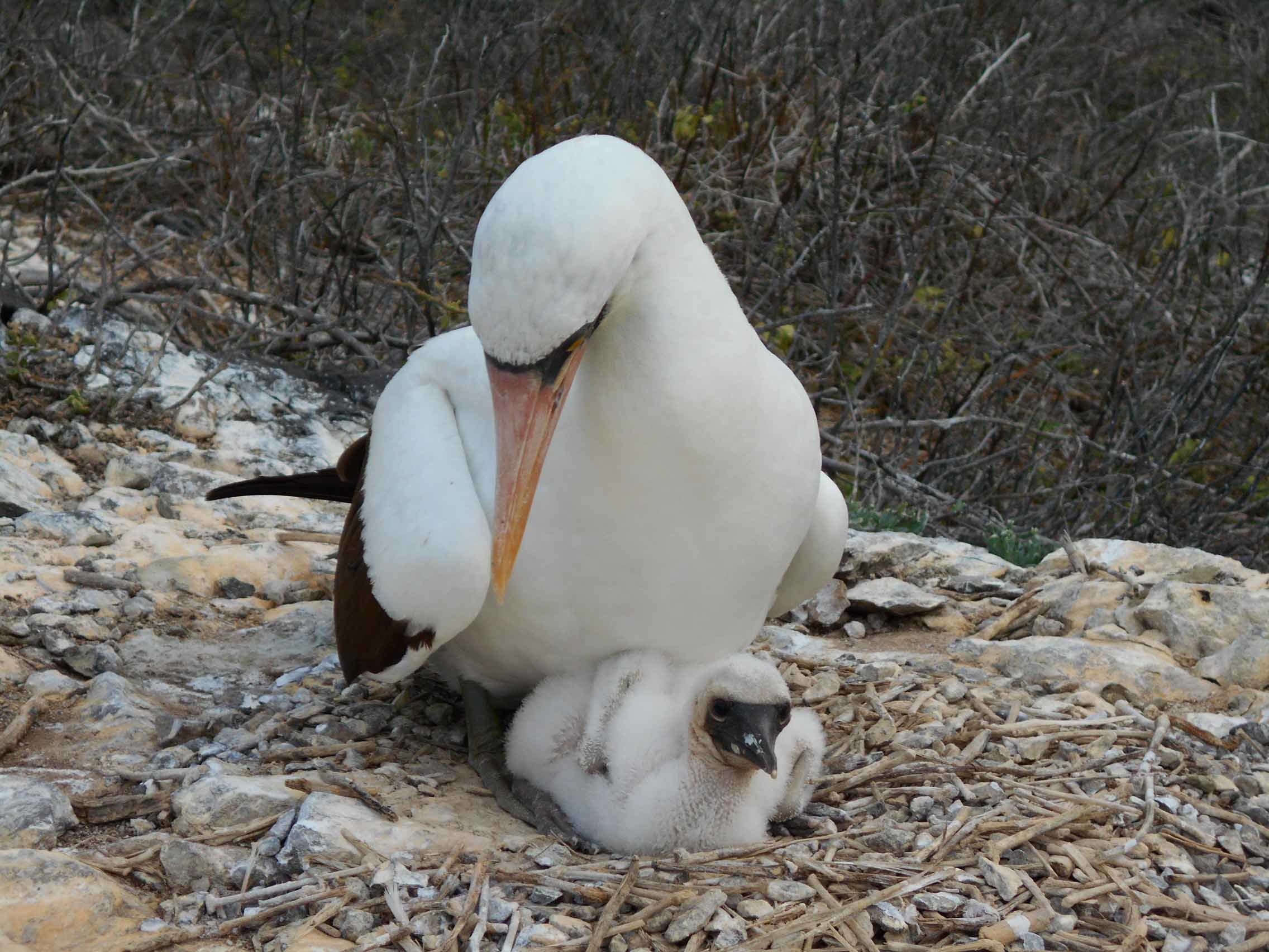 Today is the last day of the year, and we woke up in the northern side of Española Island for our first full day of the expedition. We kayaked before breakfast, and it was fantastic! We saw sea lion pups playing close to us, a couple of sea turtles, and blue-footed boobies. After breakfast, we had a wet landing on a white sandy beach called Gardner and were greeted by sea lions and mockingbirds. Their lack of human fear gives them a playful and relaxed attitude. Other groups went deep-water snorkeling and had the opportunity to play with sea lions for at least half an hour.