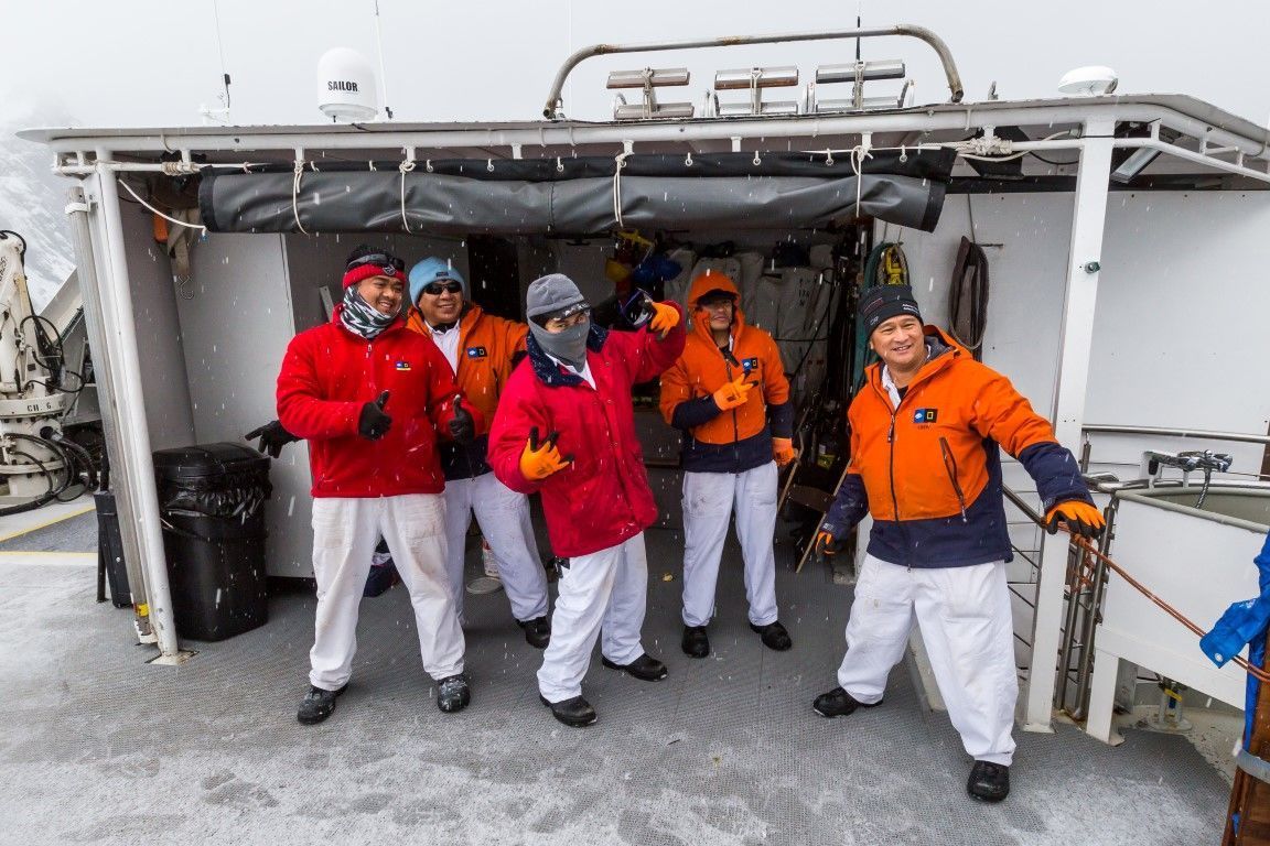 We woke up early in the morning as National Geographic Islander navigated along the northern part of Isabela Island. Slowly the sun appeared above the clouds surrounding Volcano Wolf. We spotted our first birds as Galapagos fur seals returned to shore from their night hunt. We enjoyed a great breakfast. Afterward, expedition leader Vanessa called everyone to the bow to celebrate as we crossed the equator. Our guests happily crossed the line. Approaching Punta Vicente Roca, the visitor site, we spotted Galapagos sea lions and a good number of ocean sunfish. The first activity of the day took place as we dropped anchor at Punta Vicente Roca. This is a spectacular geological site. The combination of the former volcano’s tall cliffs and the tuff cones formed later adds an amazing contrast to this unique visitor site. Our best tools for exploration, our Zodiacs, were lowered down, and off we went to explore the coast. We observed Nazca boobies and blue-footed boobies resting on the small ledges of the tuff cones. Galapagos sea lions swam close to our Zodiac, and Galapagos penguins rested on a broken piece of the tuff cone after feeding. What a wonderful sight! In a calm area, we found a good number of Pacific green sea turtles. The morning’s activities ended with snorkeling. Pacific green sea turtles, plenty of colorful fish, Galapagos marine iguanas and flightless cormorants surrounded us. It was a phenomenal experience! The ship was repositioned toward Fernandina Island. The youngest island of the archipelago, Fernandina is a highlight of our expedition. This island shows our guests the beginning of life. We observed animals thriving in the hostile environment. Pioneer plants like lava cacti grow on the lava fields, breaking down rocks little by little to create soil for the next generation of plants. Punta Espinoza is known for its huge colony of Galapagos marine iguanas. It is hard to distinguish the iguanas from rocks since they are so dark in color. On the other hand, colorful Sally Lightfoot crabs added contrast to the young, dark lava fields. We ended our walk as the sun was setting, returning to the ship with great memories. It was a fantastic day in the western part of the archipelago.
