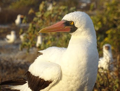 This afternoon we landed again, this time on a place known as Prince Phillip’s Steps. There we found one of the largest colonies of Nazca boobies of the archipelago. We saw several couples starting to build their nests, others had small new born chicks and we also found several juveniles that are now independent of their parents. As we explored a bit more along the rusty red lava flow we found three short-eared owls hiding in small crevices and one of them using the yellow dry grass to camouflage itself. We took lots of pictures of all of these birds and also the landscape with great light. After a wonderful walk we returned aboard and celebrated Halloween with great costumes and had a lot of fun.