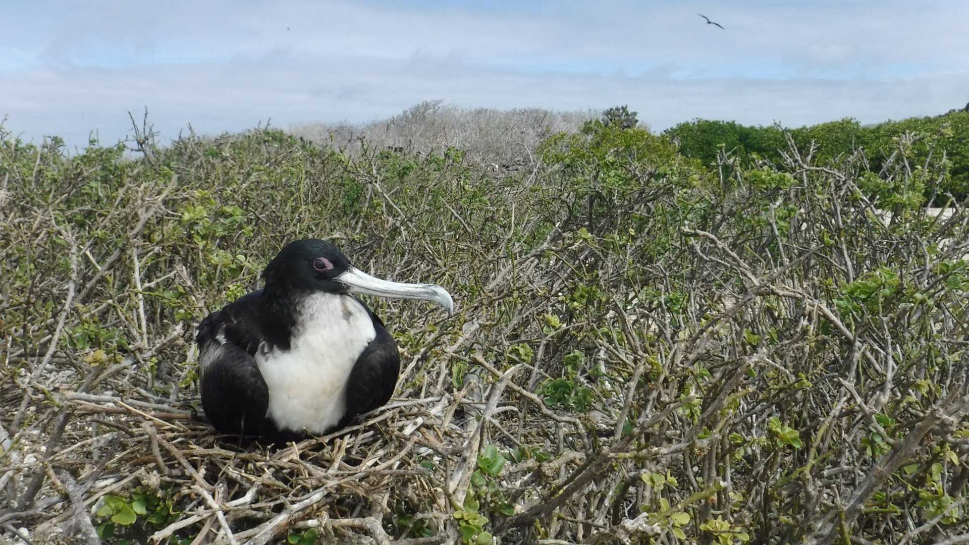 During the afternoon, we hiked, looking for the short-eared owl among the bushes, where it hunts and feeds on small storm petrels. The owl stays camouflaged until it makes the last move. We also saw the nesting site of red-footed boobies, where we found a chick opening its beak, waiting to be fed by one of its parents. How different red footed boobies are when they are younger, and how unique in their behaviour when up in the trees.