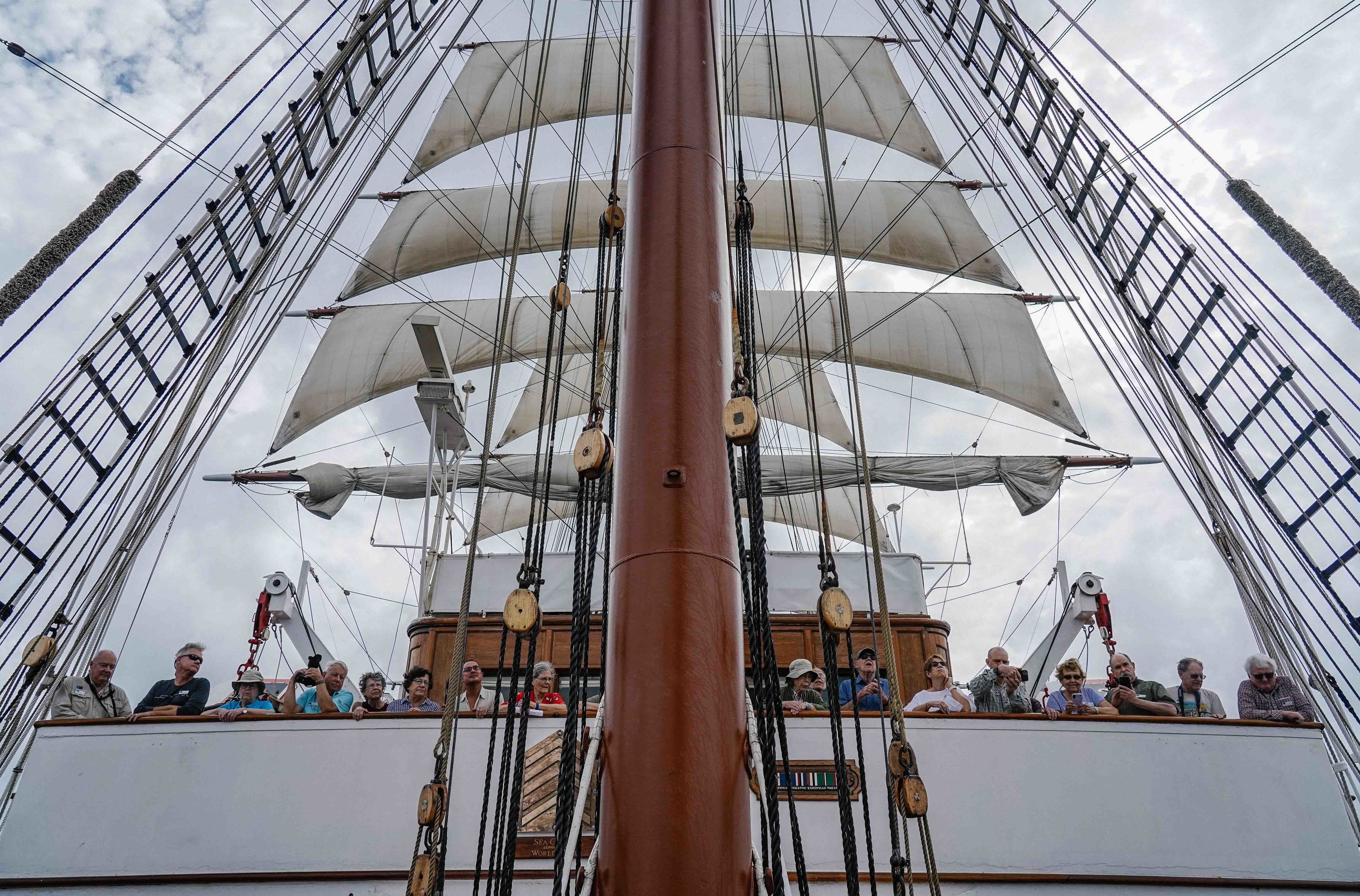 When we woke up, already anchored in the bay of Genovesa Island, the sky looked overcast, a little dull to tell the truth. But as the minutes went by, it became clearer and clearer, sunnier and sunnier. The early birds went out on the last kayak and paddleboard outing, our fourth of the trip! In calm waters, at the inside base of a crater wall, great frigate birds and red-footed boobies perched on branches overhanging the sea.