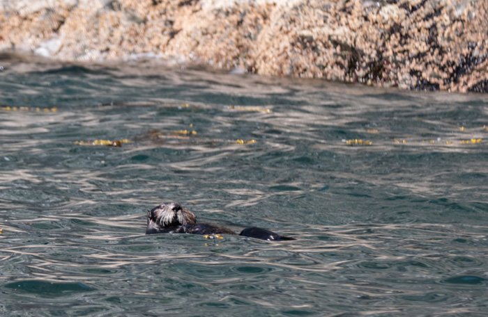 The afternoon took us to a staff favorite–the Inian Islands. Being the most northerly point where the Pacific Ocean enters the waters of Southeast Alaska, it is truly a wonder to behold. When the tides shift, an event that happens four times a day, the feeding frenzy begins. Countless birds swarmed overhead as the whirlpools formed. The Steller sea lions abandoned their haul outs in search of fish that had been raised to the surface against their will by the incoming current. Even the humpback whales are savvy to the occurrence, swimming against the tide to allow the myriad of bait fish to find a home within their stomachs. The stars of the show though were, as usual, the sea otters. Dotting along the shoreline, they bobbed–some with newborn young in tow, while others stacked their bellies with freshly foraged items, including sea urchins and basket stars. In the evening, the weather held, allowing us to have cocktail hour upon the bridge deck in view of the Fairweather mountain range. Today is proof of something long understood–Alaska provides.