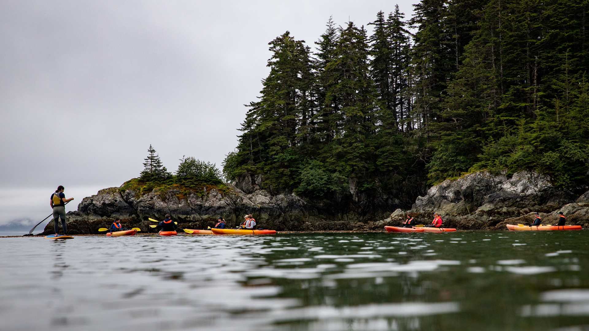As we made our way to our anchorage off George Island this morning, we awoke to a beautiful low mist moving in and out of the small islands of Icy Strait and Cross Sound. The open Pacific beckoned to the west, and we felt the swell of the ocean for the first time on our trip. After landing on George Island, kayakers and stand-up paddleboarders took to the water as hikers and photo walkers explored the land. A short reposition during lunch landed us a mere two miles away at Hobbit Hole. We were ready to explore the Inian Islands on Zodiac cruises. Sea otters, sea lions, bald eagles, and other types of wildlife were waiting for us on the rocky shores and in the churning waters. It was a lovely day to explore the northernmost entrance to the Inside Passage of Southeast Alaska!
