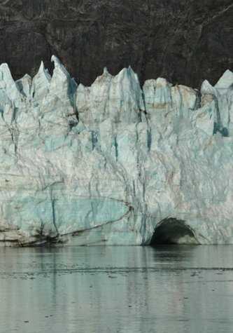 Alpenglow on high peaks was beautiful when we woke early this morning in Glacier Bay.  We were 55 miles into the bay, and ahead of us was the Grand Pacific Glacier. We could see its course - graceful curves as it flows down to the sea. The face of Grand Pacific is now so covered in dark, rocky material that it hardly resembles ice.  To its left is beautiful Margerie Glacier, which is mostly white. Margerie made loud popping sounds as tons of ice cracked and shifted.  Chunks of ice fell, splashed to the water, and our ship rocked on the waves. As the sky brightened, jagged contours and details were easier to discern:  tall spires, turquoise layers, and an enormous ice cave.  Five harbor seals rested on a chunk of floating ice.