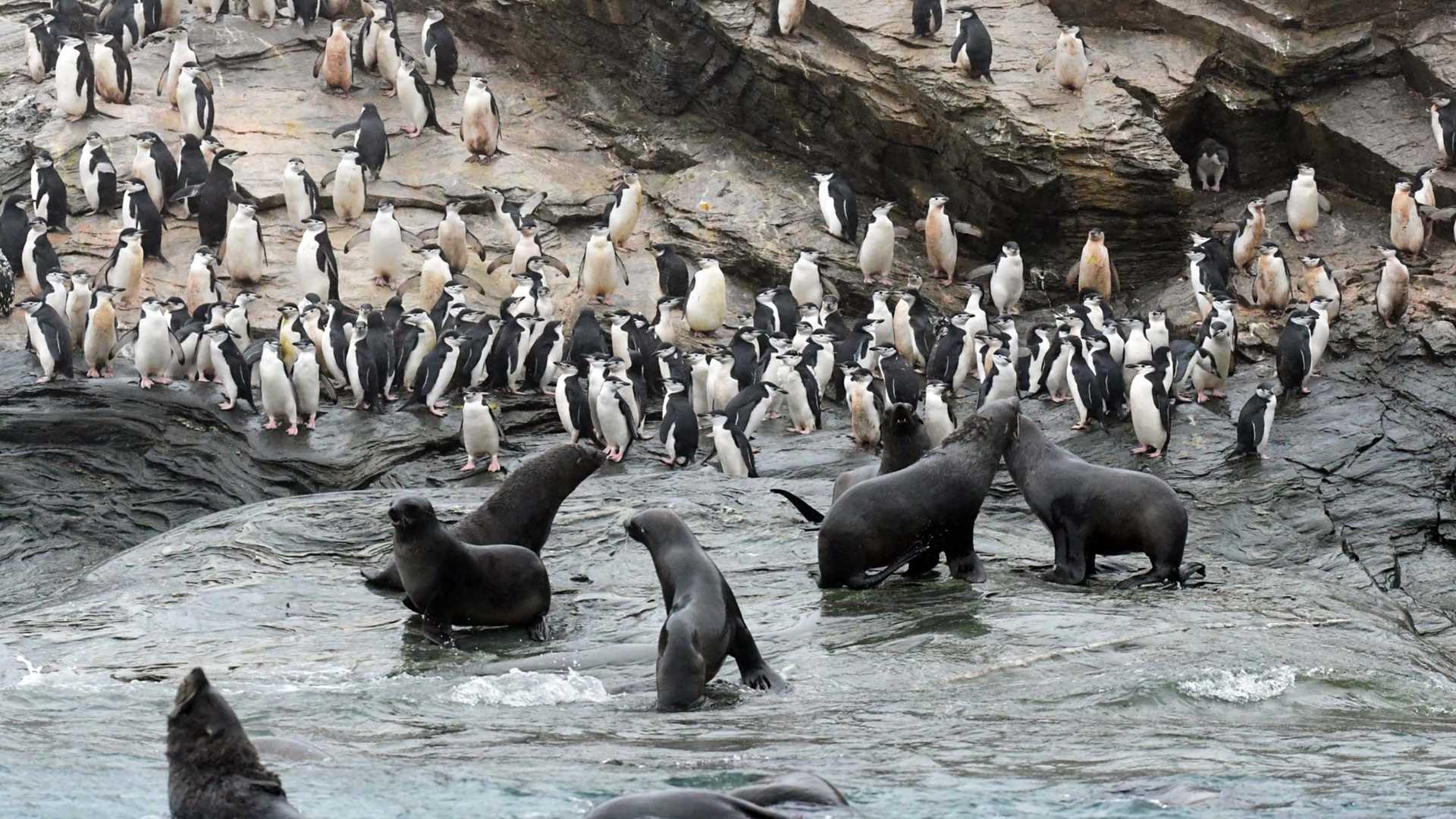 Today we woke up in the northeastern part of the South Shetland Islands. Already by 5:50 our expedition leader Russ called for another exciting day of exploration. Dense fog surrounded the National Geographic Explorer making her appear like a ghost ship, anchored just south of Gibbs Island. Thanks to excellent guiding from the Bridge, the Zodiac drivers successfully navigated the early risers through the mist, towards a large colony of chinstrap penguins in a bay near the eastern end of the island. In the late morning National Geographic photographer Susan Seubert gave a fascinating presentation “On Assignment with National Geographic”. She shared a number of spectacular photos from many corners of the world. The afternoon visit to Point Wild on Elephant Island, framed by stunning scenery and an abundance of wildlife marked the end of the true Antarctic part of this fabulous itinerary. We will now set course for new adventures on the sub-Antarctic island of South Georgia.