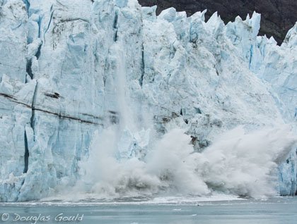 Soon, it was time to head north towards our ultimate destination—Margerie Glacier. Very little happened for a while, but out patience was rewarded when two enormous chunks of ice calved, crashing into the water with an epic splash!