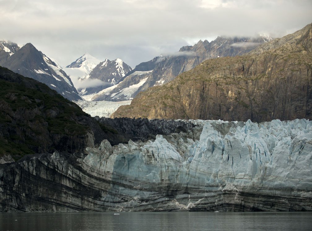 At mid-night on this auspicious day the National Geographic Sea Lion entered Glacier Bay and began her journey 65 miles north to the face of Margerie Glacier.  Our officer’s staff piloted our ship through-out the night and into the dawn light as we approached the end of Tarr Inlet and the face of several glaciers. The sunrise light decorated the mountain tops behind Margerie Glacier and slowly crept down the mountains bringing a soft filtered sunrise to the upper region of Glacier Bay National Park...our destination for this Thursday in August.