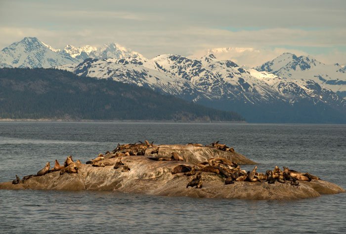In the early morning light National Geographic Sea Lion entered Glacier Bay. After picking up our park ranger Nicole Schaub, rangers in training, and Lee and William, two Tlingit cultural interpreters, we began making our way north in Tarr Inlet. In 1794, Captain George Vancouver sailed the H.M.S. Discovery through these waters, making it only to the entrance of what is now Glacier Bay...there he found a wall of ice, now called Grand Pacific Glacier. The ice wall Captain Vancouver encountered has now retreated 65 miles south up Tarr Inlet. Our journey today, would be cruising those 65 miles of Tarr Inlet in search of wildlife and even more; enjoying the visual feast being presented in the early hours of this glorious day! Our trip, so far, has been graced with astounding weather...from the early dawn hours until sunset each day we have watched the slow moving late spring sun stretch across an open blue sky!