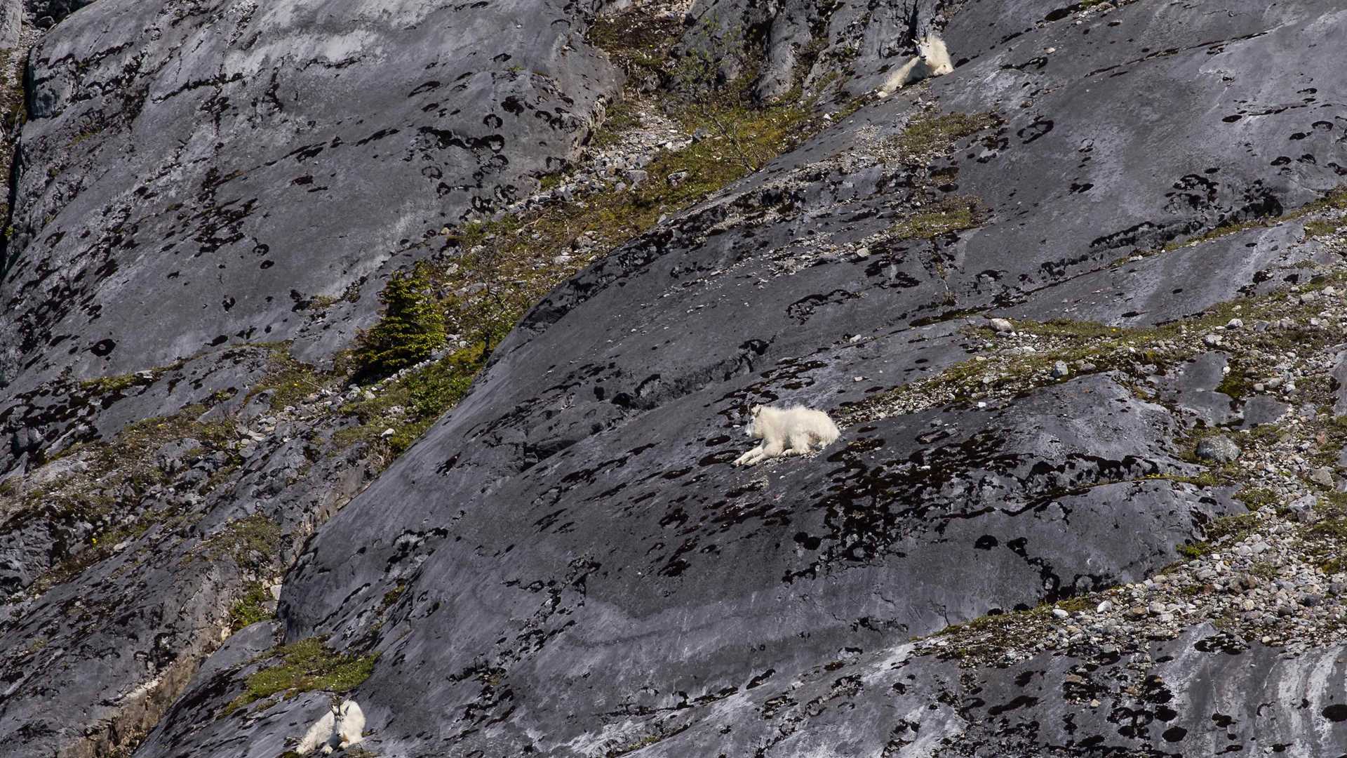 We headed southward and sailed along the western shoreline, making a detour into the Johns Hopkins Inlet to view the Lamplugh and Johns Hopkins Glaciers.  The Johns Hopkins Glacier is noteworthy not just for its beauty, but also for the fact that it is the only glacier in Glacier Bay that is advancing. At the moment, it is one of the very few glaciers outside of Antarctica that is advancing. The weather today proved to be quite extraordinary with crystal clear conditions allowing us to view the distant Fairweather Range, including Mount Fairweather itself rising to 15,329 feet above sea level. The blue sky and warm, sunny conditions made for a truly memorable experience here in Glacier Bay. In addition to the wonderful scenery, the day proved exceptional in our search for wildlife. Many species of sea birds were identified throughout the bay, as was expected, but the mammalian life proved exceptional. Seventeen brown bears and one black bear were sighted! And, not to be outdone, 24 mountain goats were counted! We cruised past the South Marble Islands, which are summer hangouts for breeding sea birds and supposedly non-breeding Steller’s sea lions (although we clearly saw one female with a newborn pup). Scattered about, we also saw many sea otters, occasional humpback whales, and even a few harbor porpoises.