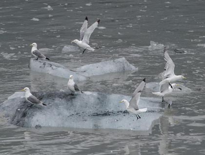 Heading into the heart of Glacier Bay, Marylou and Irene oriented us to the park and provided us with a base of natural and cultural history. Turning into Tidal Inlet tour ship slowed, a sign that something of special interest might be at hand. Ready with cameras, binoculars and anticipation, we gathered on deck to watch a brown bear working its way along the barnacle encrusted rocks lining the shoreline. Followed by northwestern crows looking for an easy meal, the bear turned over large rocks looking for tasty treats. Brown bears are the same species as grizzly bears. Coastal grizzlies are typically referred to as brown bears. With salmon, beached whales and other marine food sources, brown bears are typically larger than interior grizzlies.