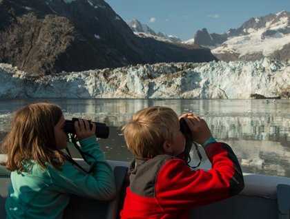 Faith presented a program on the Tlingit culture and connection to Glacier Bay, Chelsea worked with the children on board to paint pictures with melted glacier ice, and also gave a talk on the birds of Glacier Bay. Humpback whales were spotted and as the afternoon turned towards evening we cruised past South Marble Island to see a large number of Stellar sea lions and an assortment of nesting birds, including puffins!
