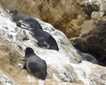 Our first stop today was at South Marble Island. Steller sea lions rested on low rocks, and we listened to their low roars and grumbles. Adorable tufted puffins with bright orange bills bobbed on the water’s surface. Black and white common murres stood in tight row on a narrow rock ledge. When an eagle flew close to the cliff-side kittiwake colony, they all scattered in flight and vocalized.