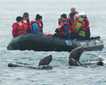 Killer whales! For the next hour and a half we were treated to a killer whale extravaganza. We had close up views of these largest members of the dolphin family, as they swam by, breeching and performing other “orcabatics”. We could hear their high pitched communications on deck and through the hull. Observing some especially rambunctious activity, we realized that the whales had made a meal of one of the sea lions.