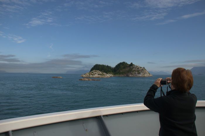 Our last morning in the wilderness brought us to the protected inlet of Ushk Bay. A humpback whale repeatedly breached, slamming its pectoral flipper on the surface of the water before its tail smashed the sea’s surface. Over and over, this extremely active whale leaped and twirled as we delighted in its performance. The Zodiacs launched. Once again, we bundled into our rain gear and headed to shore for forest walks and strolls along a salmon stream. A wide meadow with braided streams ran through the thick forest. Random, rusting iron equipment from a long-forgotten enterprise was half buried along the pebbled shoreline. We crossed small, rushing streams. The stream on the far side of the meadow shivered with the fins of pink and chum salmon. We watched these creatures, driven beyond self-protection, as they completed their life cycles by spawning. We saw females turn on their sides and in a spasm of enterprise, writhe their tails along the pebbled bottom of the stream to make a perfect indentation for their precious eggs. Attendant males stayed within inches of busy females. The walking path was heavy with the bodies of salmon. Life and death in the Alaskan wilds surrounded us. We returned to the warmth of our ship and traversed the narrow passages toward Sitka. Mist hugged the trees as we saw night descend on our final evening in Southeast Alaska. Photo caption and photographer: Humpback whale. Photo by Rich Kirchner