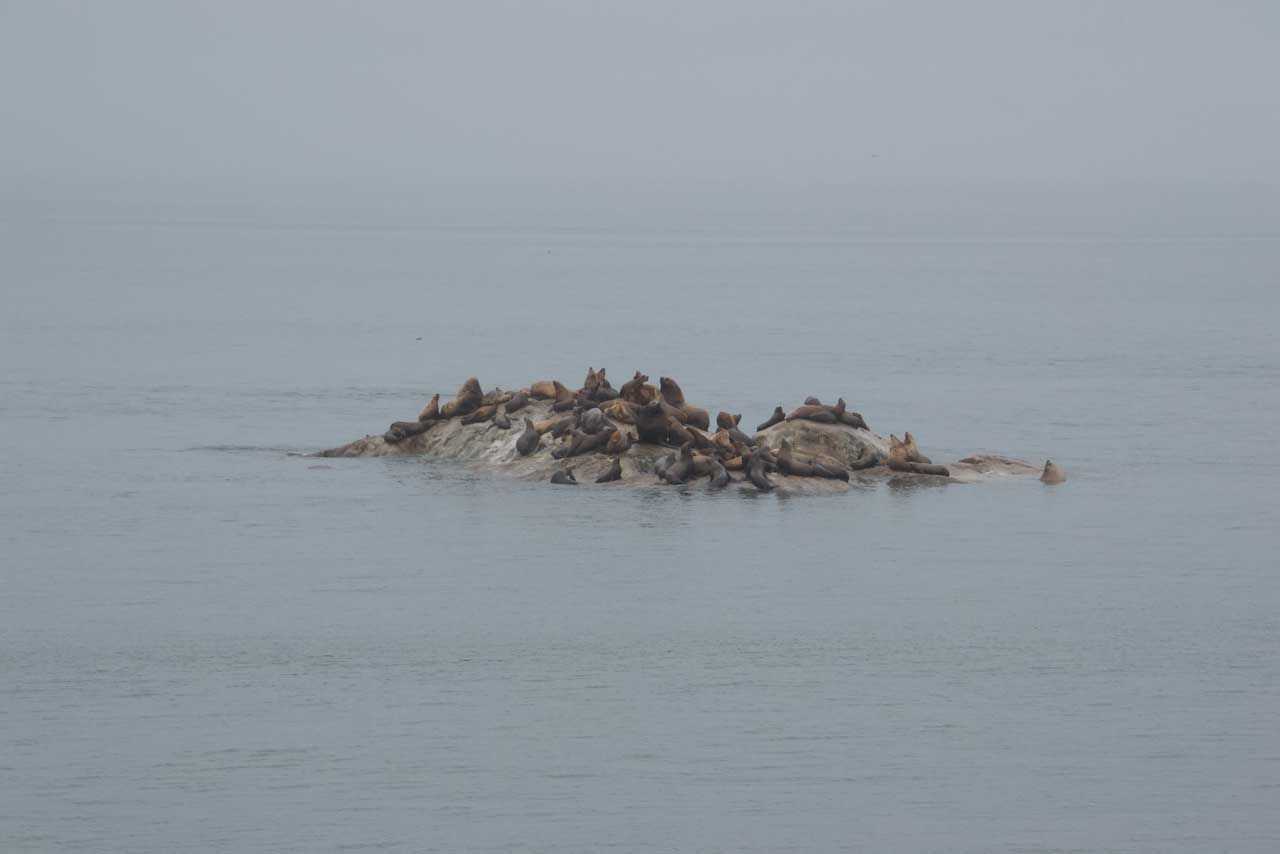 We began our day by welcoming a Glacier Bay Service Ranger and Naturalist Colleen aboard National Geographic Venture in Bartlett Cove. The morning was serene with a misty fog coating the vast and wild surroundings. Sea otters curiously greeted us by poking their heads out of the glassy bay waters as we enjoyed our morning lattes. We made our way north in Glacier Bay toward South Marble Island, where we discovered roaring Steller sea lions, tufted puffins, common murres, pigeon guillemots, glaucous-winged gulls, black-legged kittiwakes, and the rare horned puffins. South Marble Island proved to be a true wildlife hotspot with an incredible view of a humpback whale and its fluke before departing the area and heading farther north toward Margerie Glacier.