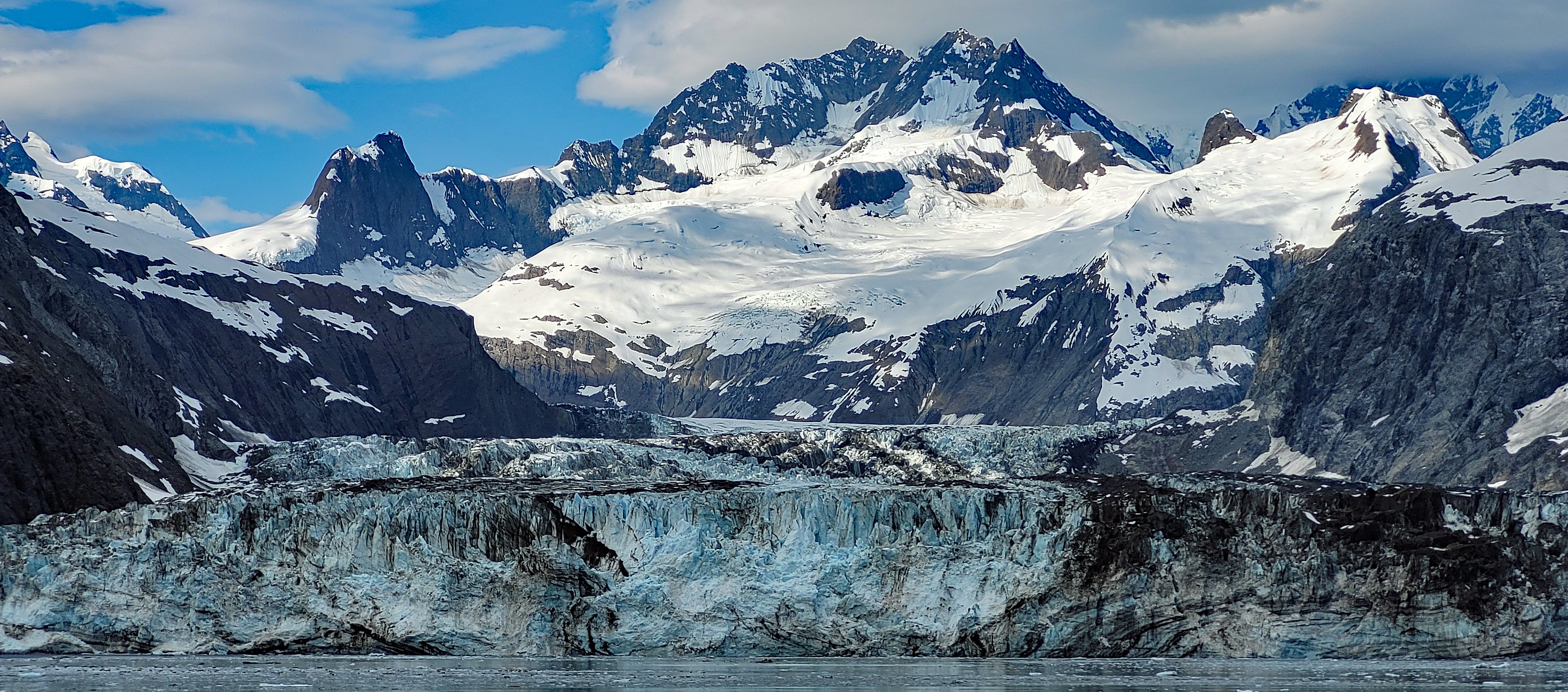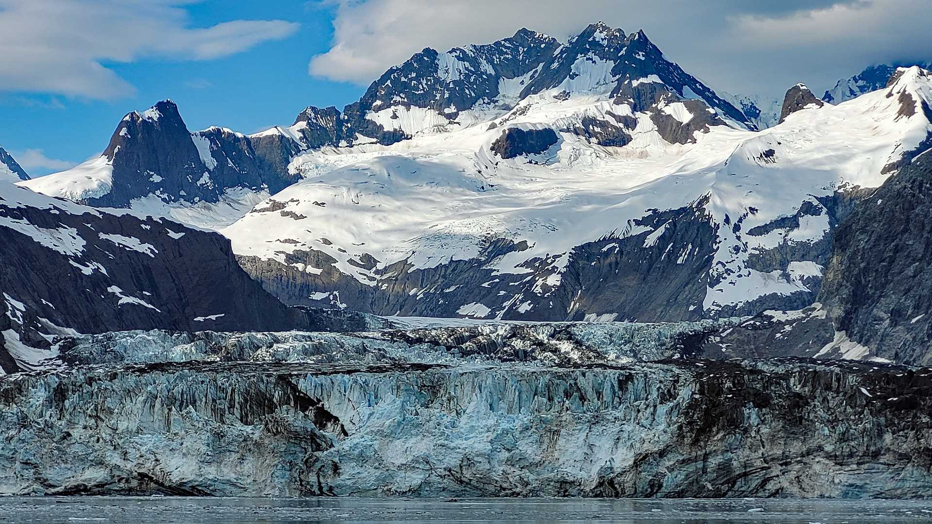 “Wow!” was the most-heard word as guests aboard National Geographic Quest emerged onto the decks this morning. Stunning mountain scenery surrounded us as we cruised past Lamplugh Glacier into Johns Hopkins Inlet in Glacier Bay National Park. As we continued up toward Johns Hopkins Glacier, many harbor seals rested on icebergs previously calved from the glacier.