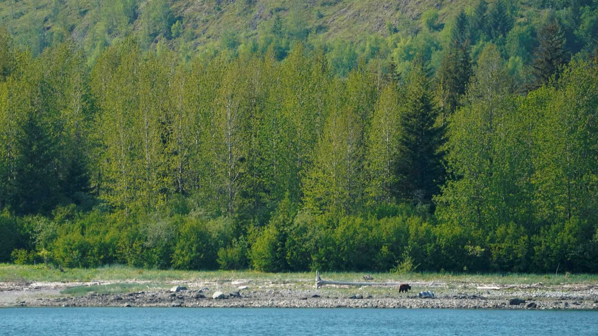 When we awoke this morning, we were already deep in the beautiful turquoise waters of Glacier Bay National Park. Over breakfast, National Geographic Quest continued our northward path up the glacially carved fjords. We passed humpback whales that sent plumes of breath rising into the still air before diving back down into the silty waters in search of food. In Russell Cut, a coastal brown bear foraged for early summer sedges along the beach. Keeping our voices low so as not to disturb the bear, we watched it browse through the grasses, moving between the shadows of the vibrant green leaves of the alders and willows.