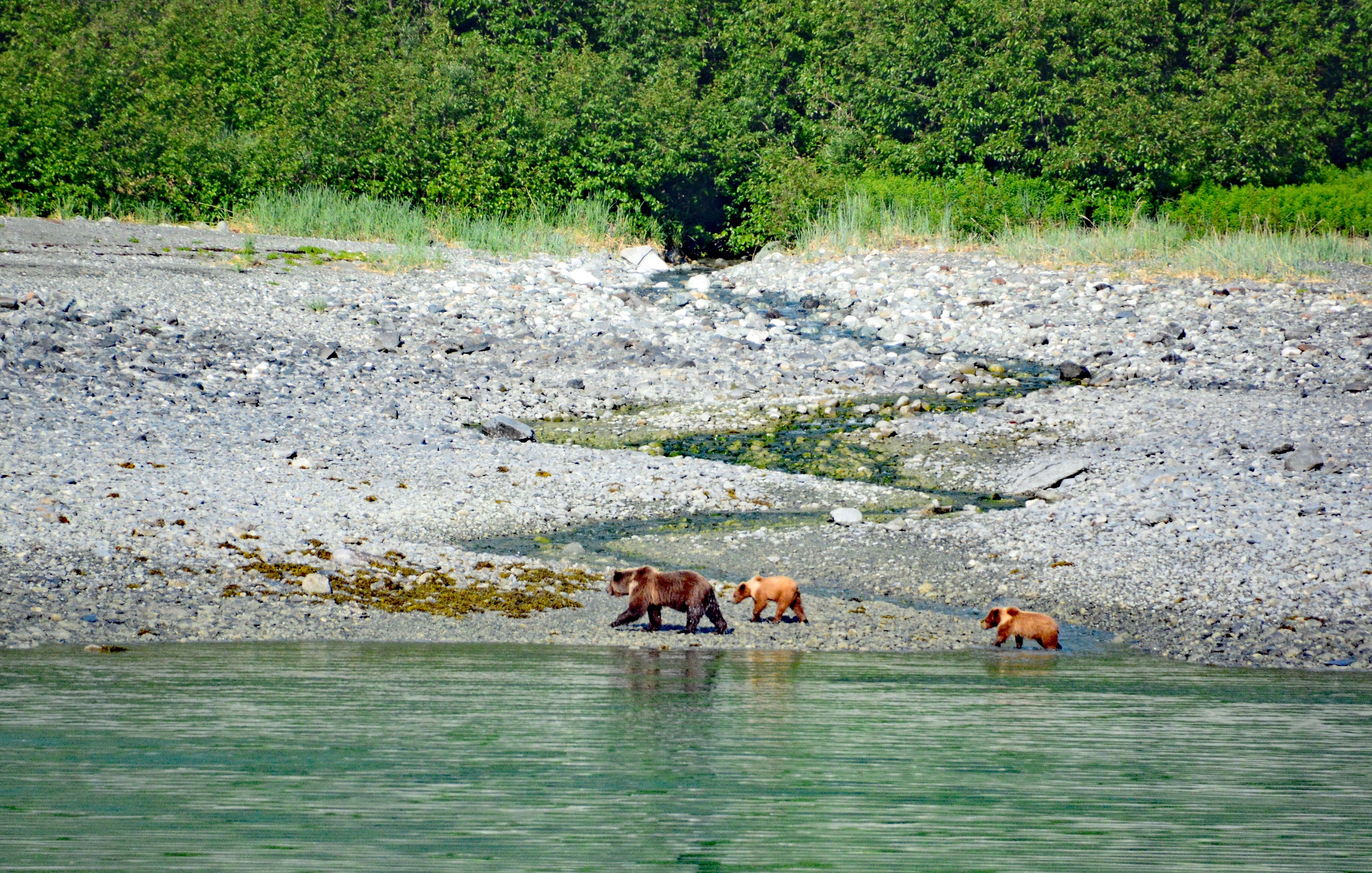 We counted seven brown (grizzly) bears in total today – a mother with her two cubs, two associating adults of unknown relation, and a couple of solo individuals. Observing from the ship offers safety, great viewing, photo opportunities, and most importantly, it doesn’t disturb the bears. It presents us with a brief glimpse into the lives of these iconic wild animals.