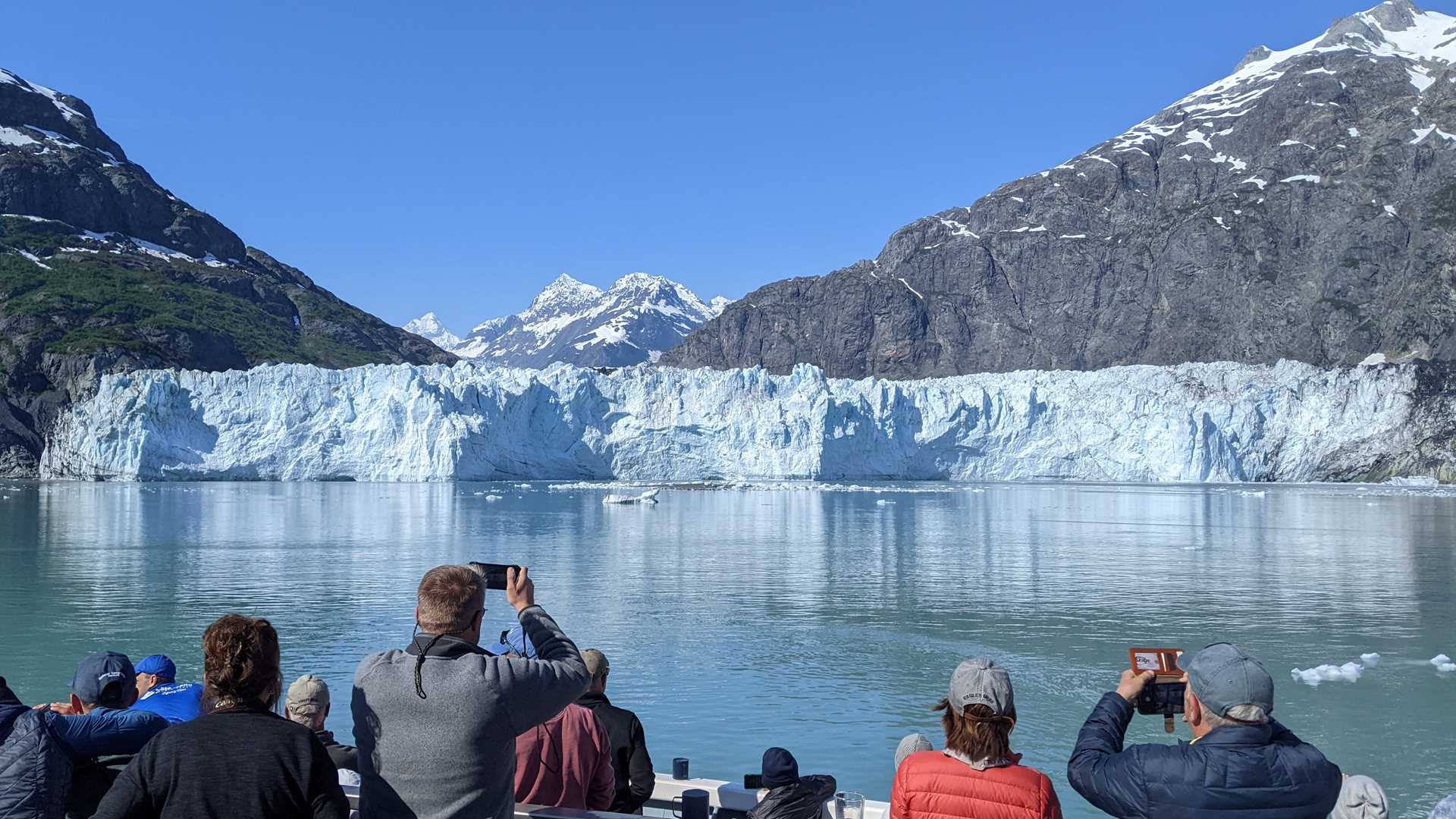 Photo caption and photographer: Guests take their opportunity to capture the great Margerie Glacier. Photo by Luke Manson