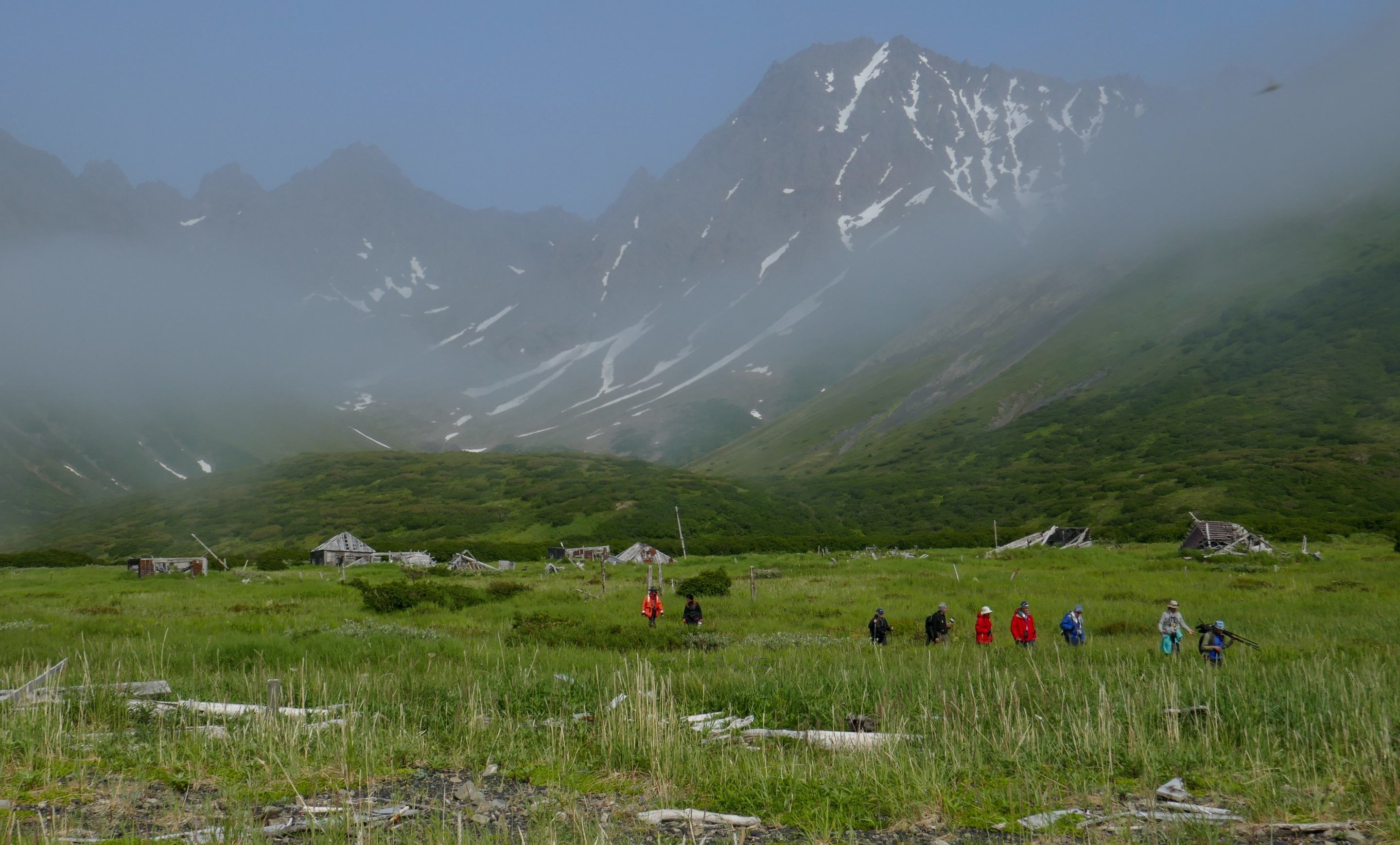 This morning National Geographic Orion entered Glubokaya Bay in the dead of fog with zero visibility. Our dedicated bridge crew sent out a Zodiac to do some soundings so that we could weave our way into the fjord and by 8:30 a.m. we made our way to the beach and had an incredible morning. Exploring the ghost town of an old village site we were quickly reminded we were in the domain of the Kamchatka brown bear (Ursus arctos beringianus). Bear trails every which where we could not help but wonder how people used to live among such a high concentration of the species.