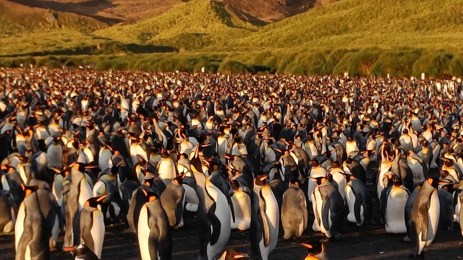 It was a tremendous last day in South Georgia – filled with awe-inspiring scenery, wildlife, and some exciting surf! We started the day before dawn as expedition leader Doug assessed conditions at Gold Harbour beach for our early morning landing. There were large openings in the clouds on the horizon and very calm breezes, which were promising signs for a successful operation ahead. We headed to shore as the sun started to peek through the cloudscape. Within an hour, the wildlife ashore (as well as our keen guests ashore) was bathed in a soft orange glow. The king penguin colony burst into song and vibrant color, and the air was pierced with the bellows (and stench) of molting male southern elephant seals, which were piled upon each other on the shore.