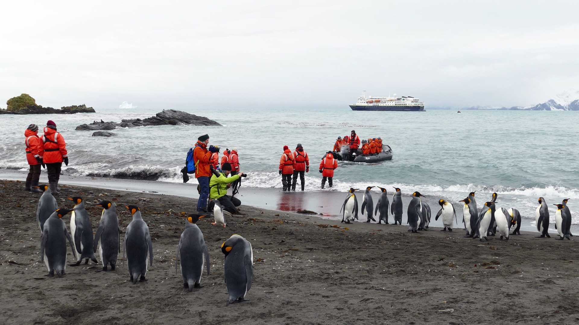 As we sailed toward our next stop, naturalist Hannah Kriesell gave an intriguing presentation on king penguins, the great stars of the day. We then landed at St. Andrews Bay—by far the largest colony of king penguins on South Georgia. Due to the swell, guests were set ashore on the most sheltered part of the beach and were guided across a river toward the central part of the colony. What an incredible day!