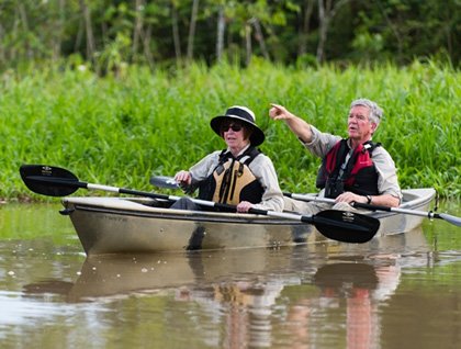After a delicious lunch and a little time to rest, we all got the preparation announcement for our afternoon activities. Around 3:30 p.m. we got the kayaks and the expedition landing craft ready to go. The first to disembark were the kayakers, ready to paddle along the mangrove forest, an amazing ecosystem that offers everyone the chance to enjoy beautiful landscapes and a great number of birds while sightseeing.