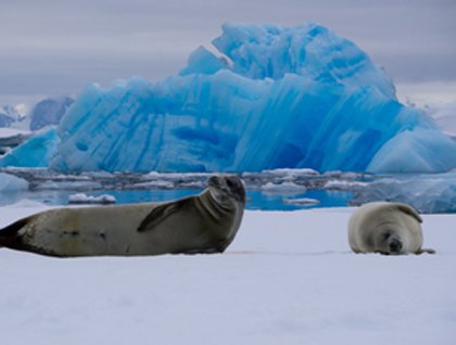 If today was an indicator of what 2015 will be like, all I have to say is watch out world, here we come. We rang in the New Year in good cheer. Throughout the night icebergs growled against our hull as we headed south and south and south. 100 years ago Shackleton struggled with ice floes closing in on him here. We had open leads with small bergs until just shy of 1 degree north of the Antarctic Circle. Then the ice said “No further merry wanderers”. It closed in ahead of us and it was time to turn around and head north. We spent the day in Grandidier Channel surrounded by ice. Some of the bergs were a startling blue color while others were flat pancakes floating on the silent sea. Kayaking and Zodiac tours got us out and into the ice. Two crabeater seals lounged on an iceberg with the most brilliant blue iceberg behind them. The clicking of cameras revealed the excitement of us all.