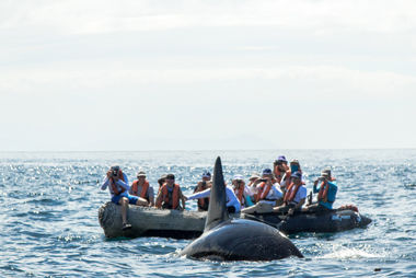 The sun was rising this morning as National Geographic Quest docked in the Port of Golfito. The Standard Fruit Company exported its banana production through the port until the mid-1980s. After this, the company formally began operations in Costa Rica. Ship handling was the main interest of the site, so very little land was used for settlement. Much of the original forest was left in place to guarantee not only the water supply, but also for the delight of those who lived here. After clearing Customs this morning, we went out to explore the mangroves of this beautiful place. Some guests enjoyed Zodiac tours. Other guests desired more exercise, so they observed the mangroves while kayaking. After repositioning the boat inside Golfo Dulce in the afternoon, we explored the trails of Dolphin Quest, a private reserve connected to Piedras Blancas National Park. We observed scarlet macaws, white-faced capuchins, white-lipped peccaries, and several species of small amphibians and reptiles. We were pleased to spot a tree frog called Hyla rosembergii , a species rarely found close to the ground, especially during the day. The day was a success, starting with a beautiful morning and ending with a fantastic sunset.