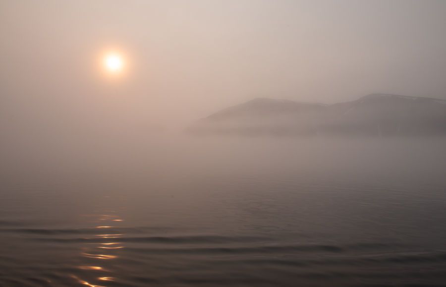 After a couple of days of dense fog, the weather gods looked kindly upon us today. The morning fog quickly burned off, allowing us to get ashore. We explored the stunning Nansen Fjord, seeing polar bear footprints and paddling kayaks among icebergs under blue skies and surrounded by towering mountains.
