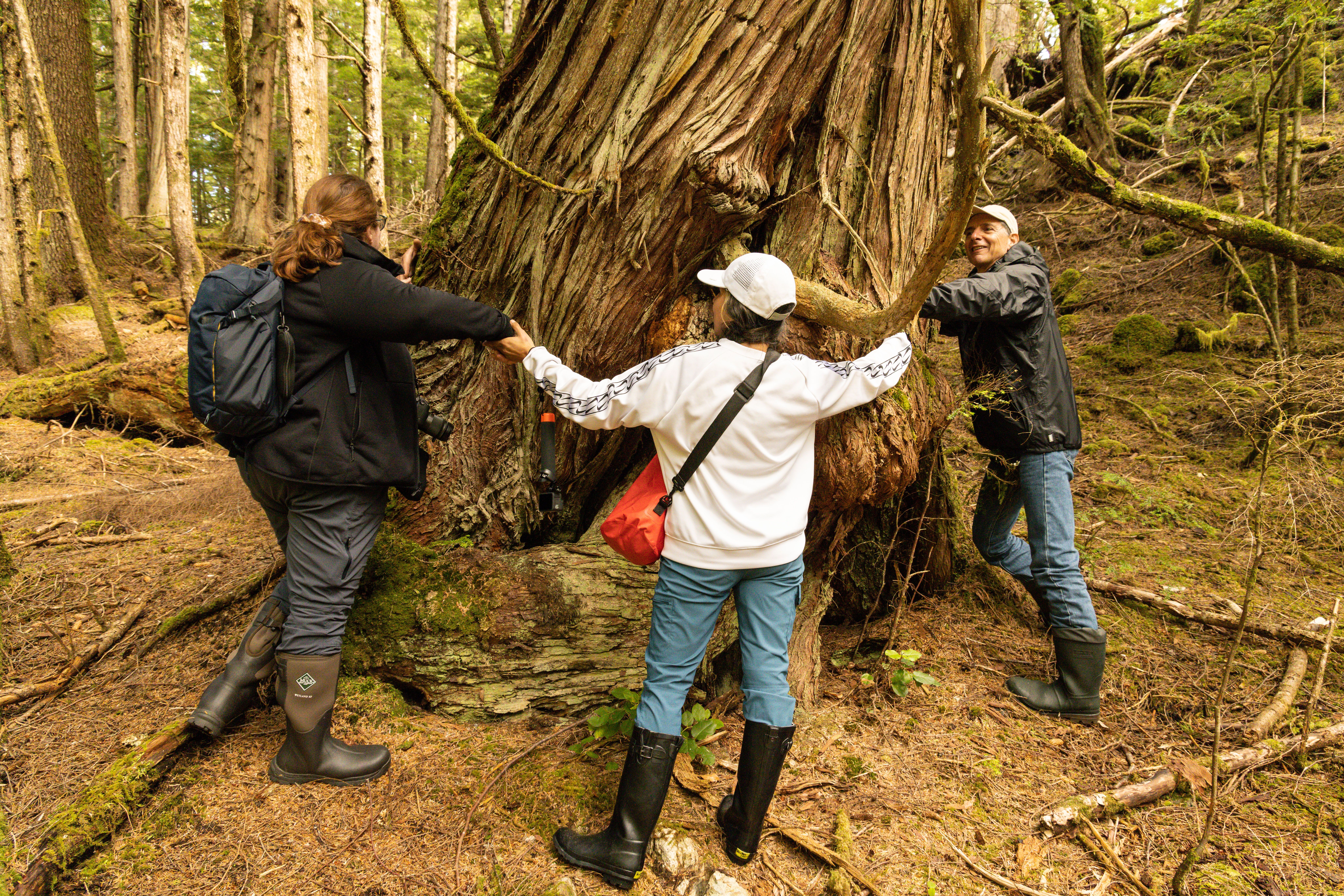 Our overnight transit led us to Clarence Strait and nearby Grindall Island, where the day dawned calm, warm, and sunny. Morning activities included hiking through a beautiful forest of yellow cedar, western hemlock, Sitka spruce and shore pine, as well as circumnavigating the island in our expedition landing craft. Hikers put ashore carefully navigated the rocky intertidal zone and then, with one giant step, entered a moss draped forest where Pacific wrens and golden-crowned kinglets alternately welcomed and scolded us.