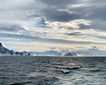 Most spectacular of all were the blue skies and sunshine that continued well into the night. We stayed up late on the bow and had a once in a lifetime experience with half a dozen or more groups of humpback whales cooperative lunge-feeding in the golden light of the Antarctic sunset.