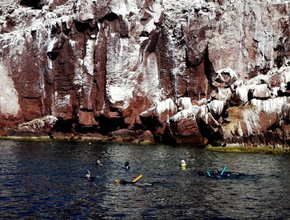 We sailed through the night up the coast of the peninsula, and awakened to another stunning clear day here in the Gulf of California. A distant splashing humpback whale teased us in its direction before breakfast, however it became shy once we got near. During breakfast the National Geographic Sea Lion anchored in Gull Rock, a scenic inlet on the eastern shore of the peninsula. It was easy to see the white-capped namesake jutting out of the water. We spent the morning exploring the area, by land and water.