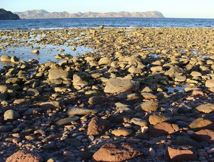 This volcanic land-bridge island has an excellent cove where the ship anchored for today’s activities. In fact, at 6:45, a team of photographers went down to the island with the purpose of getting in their cameras the unique colors of the Sonoran Desert at sunrise: green, pink, red, and orange. Later, after breakfast, guests and naturalists departed to conquer the ridge of a chain of hills and had a view of the magnificent Half-moon Bay below. Other hikers explored the flat terrain inland that, at times, is filled with seawater forming an evaporative lagoon that the local fishermen modified with excavating pools. They did this in order to collect salt—used in coolers with ice to freeze fish, especially red snapper. We also enjoyed the halophytes, or salt-loving plants like the different grasses, iodine bush, peckleweed, amaranth, blazing star and others. There were members of the cactus family as well in the foothills, including the galloping cactus and the little nipple cactus with fruits.