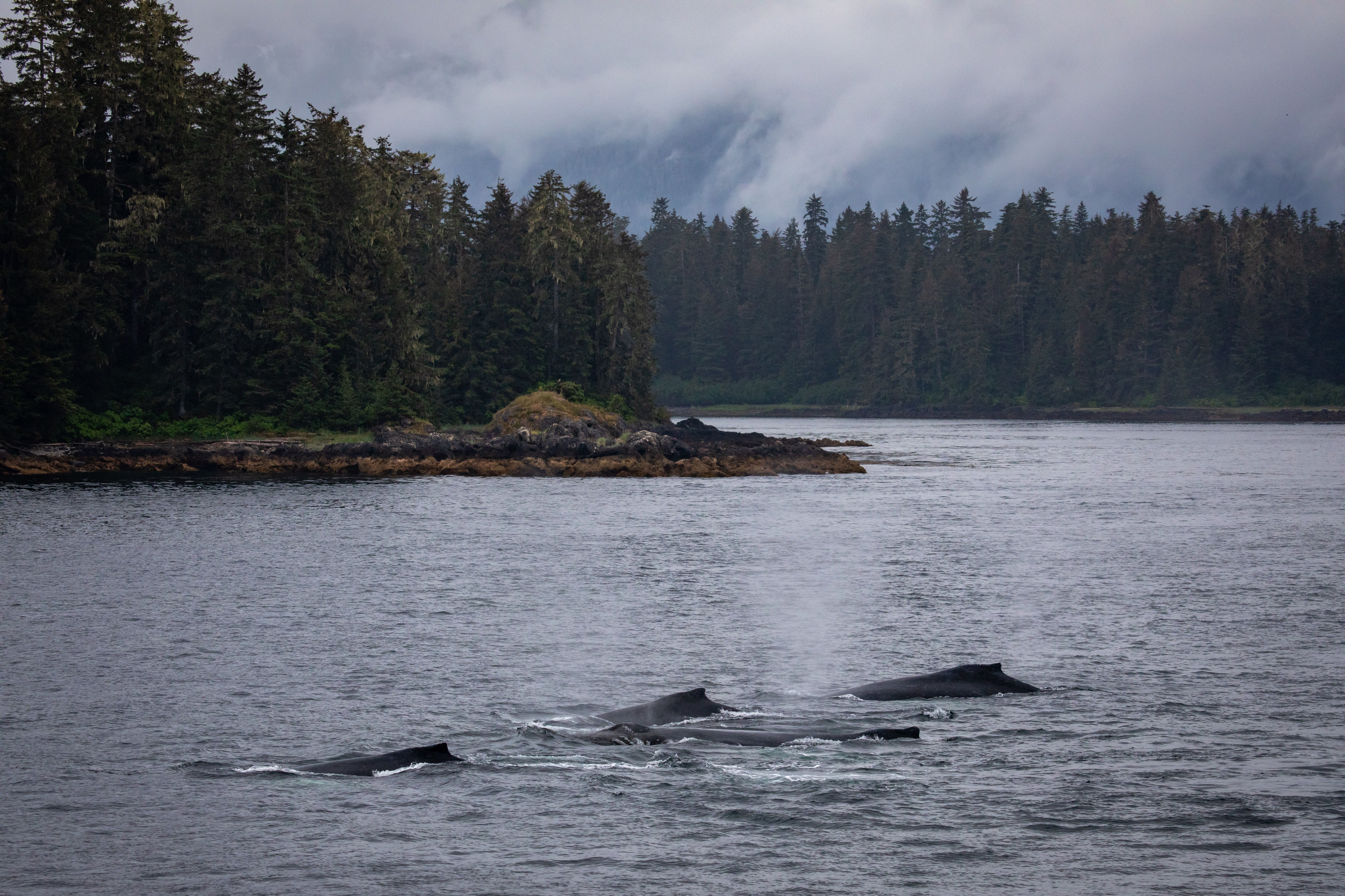 We began our day earlier than normal in the protected waters of Halleck Harbor in Skanax Bay. A dedicated group of adventure-seekers went ashore for a multi-hour bushwhack through the forest of Kuiu Island, which has one of the highest densities of black bears in Southeast Alaska. Soon, other hikers ventured out for forest walks on game trails and to explore the incredible intertidal zone of this area. We all returned for a delicious brunch on board National Geographic Venture before heading back out for more hikes and kayaking opportunities. After our young Global Explorers took the helm on the Zodiacs, we pulled anchor and looked for wildlife in Frederick Sound. Almost immediately, we came across a group of humpback whales bubble-net feeding, a perfect end to our afternoon!