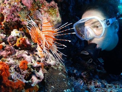 The scuba divers reported back similar amazing conditions at their dive site a short distance away, they were also enjoying many sightings of turtles and pretty fish such as the brilliant lion fish, captured in the photo by our undersea specialist Mike Greenfelder.