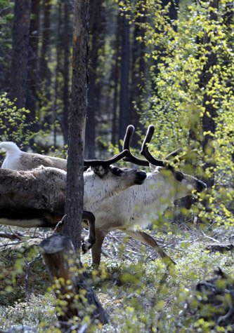 Here we found the forests of the national park leading up the valley. On the shore there was a small Sami community, which made its living from logging in the surrounding woodland. We went ashore and hiked alongside the river in the sun, towards the base of a waterfall that cascaded down the mountainside at a shallow angle. One group of hikers encountered a group of three reindeer following the river. The trees and heathland were resonating with the songs of birds. Many of us took to the water in kayaks to explore the cliff sides with more independence, with shorebirds such as oystercatchers and the occasional whimbrel flying between the boats.