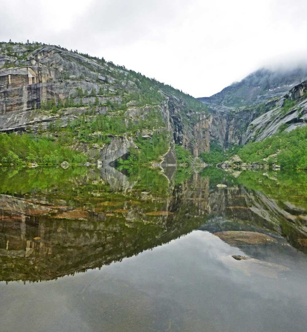 Along the sides of these rivers run a number of trails, and we explored the length of one to reach its base at a large waterfall. Some hikers continued on further up to the surrounding cliffs to take in the vista of the lakes from high up. There was also plenty to be seen from the sea, as a number of people took to Zodiacs to view the cliffs and the wildlife on and near the mirror calm waters of the fjord.