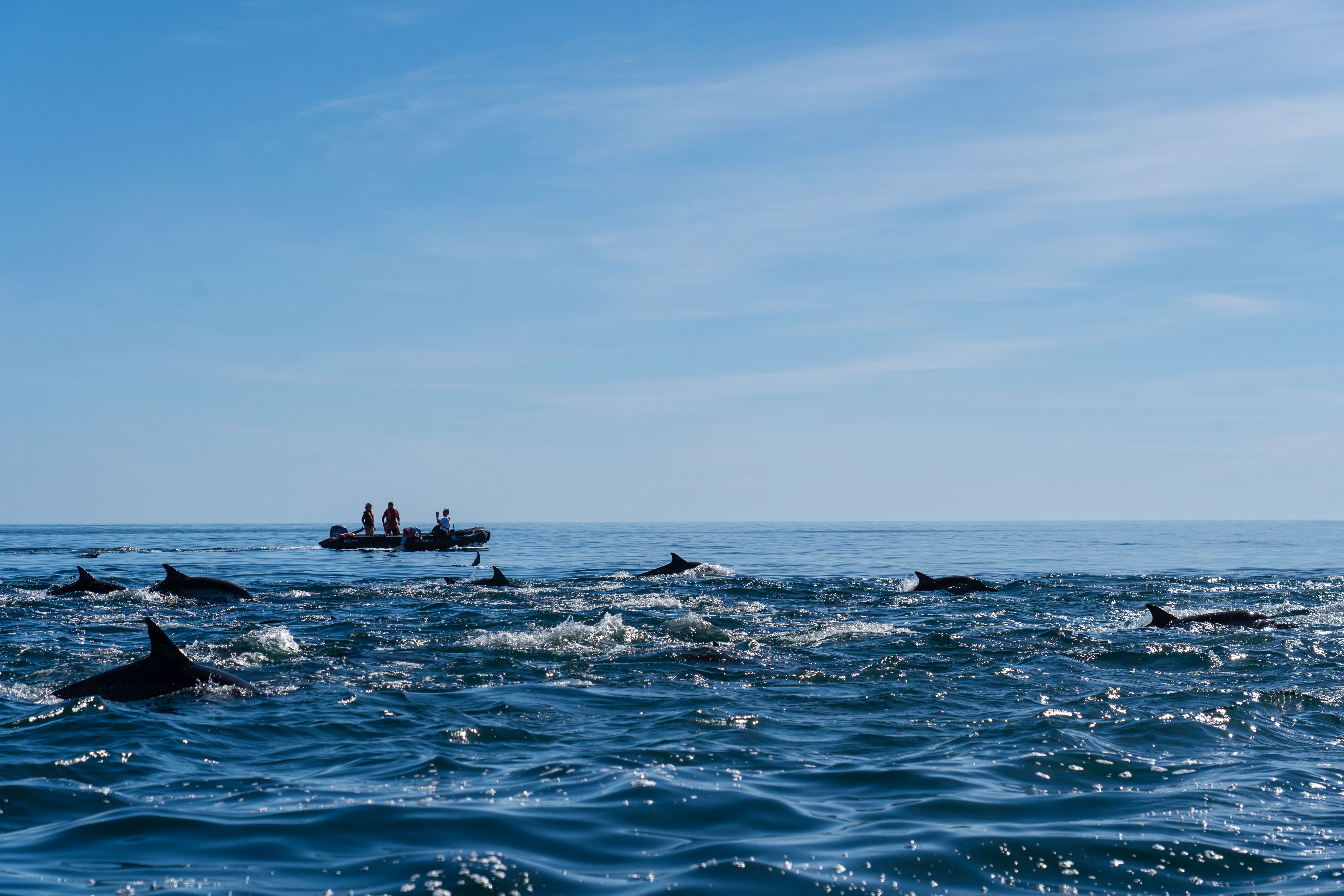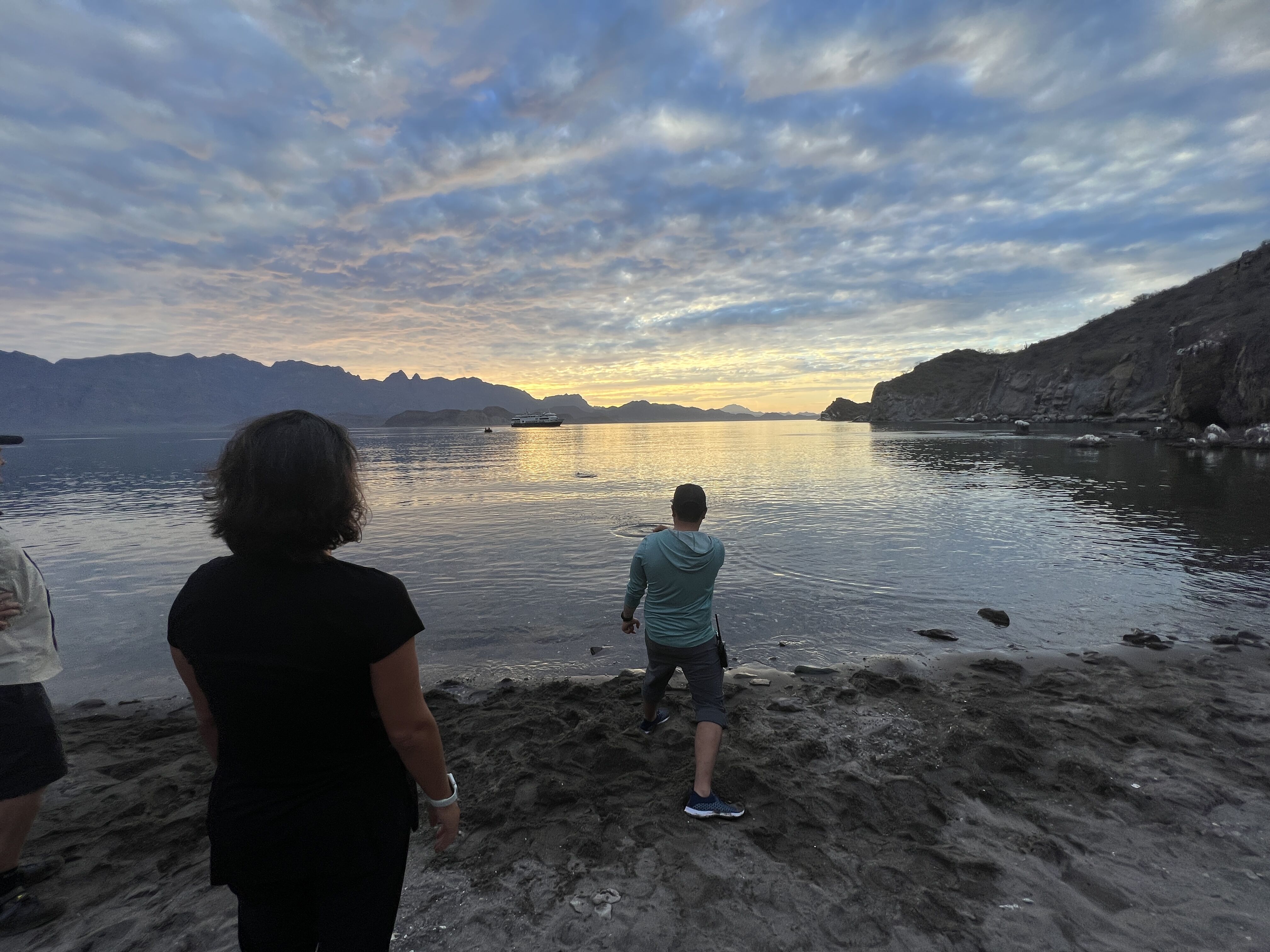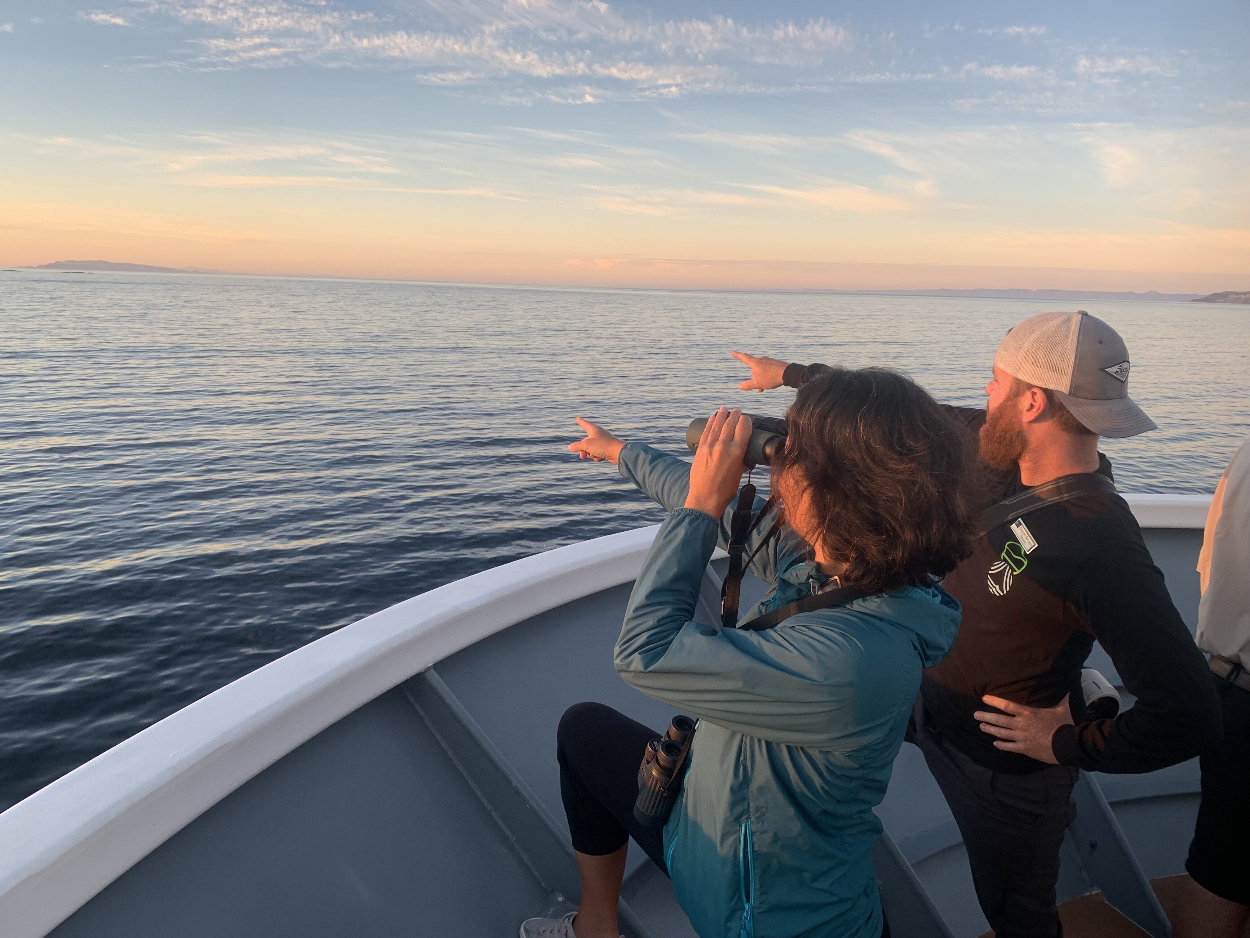 After a scrumptious BBQ lunch on the sun deck, we continued south in search of more whales and dolphins. So far on this expedition we have seen literally hundreds of whales and dolphins, but we wanted more. Fin whales, bottlenose dolphins, and a huge pod of many hundred long-beaked common dolphins were the perfect answer to our quest, and hundreds of gigabytes of memory were gobbled up by hungry cameras intent on capturing the moments throughout the afternoon. As the sun slowly sank behind the Baja Peninsula in the west, we were elated but tired from packing in so much into one Baja day! Rest well dear shipmates, for tomorrow we swim with California sea lions at Los Islotes!