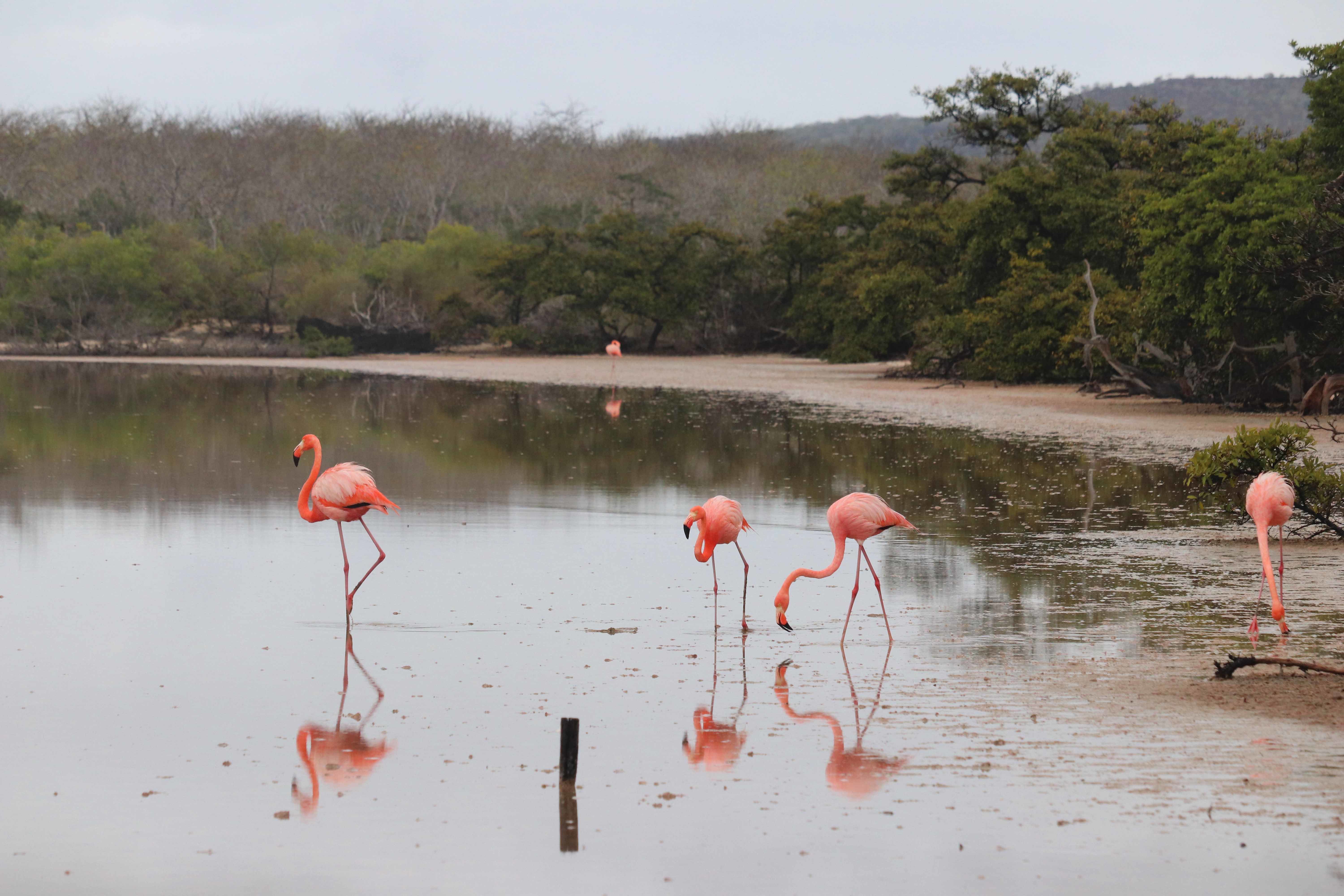 It’s our first full day of expedition on National Geographic Islander . We started our day with a morning hike on North Seymour, which is one of the best islands to observe nesting colonies of frigatebirds, blue-footed boobies, swallow-tailed gulls, and many more species of marine birds. Later in the morning, National Geographic Islander navigated to the beautiful Rabida Island, where we enjoyed an amazing afternoon. Guests swam and snorkeled with sea lions and many different species of reef fish off the red sand beach. We walked to a pond located behind the beach and observed flamingos nesting after more than 20 years on this island.