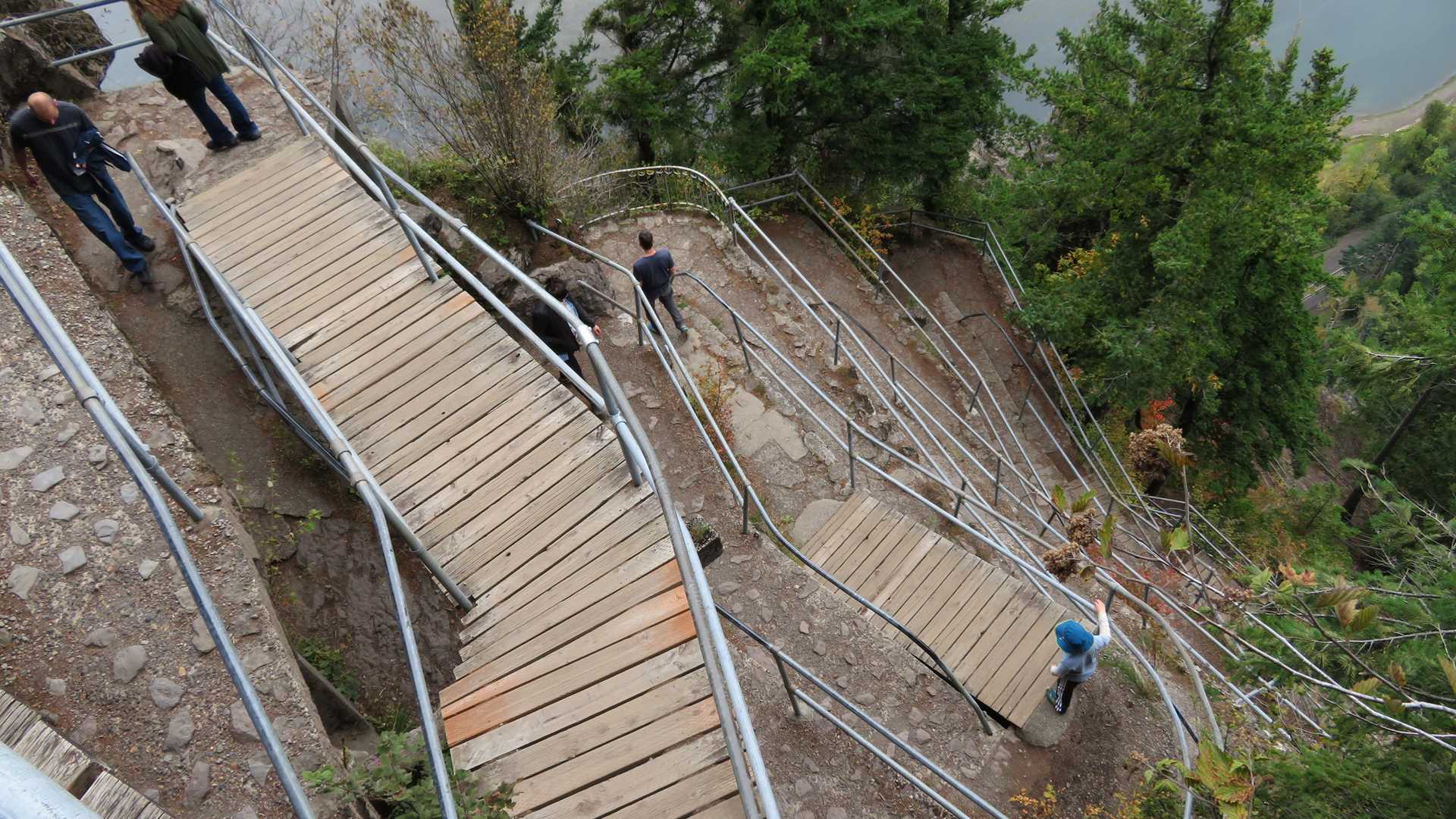 For the afternoon, we went in several directions. Some on an excursion to the Columbia River Interpretive Center to learn more about the native peoples and pioneers, natural history and even see a reconstructed fish wheel. Others went a trip to see Multnomah Falls, the tallest waterfall in the Columbia Gorge. A third group of intrepid hikers ascended Beacon Rock, a basaltic plug volcanic remnant that sits sentinel on the north side of the river.