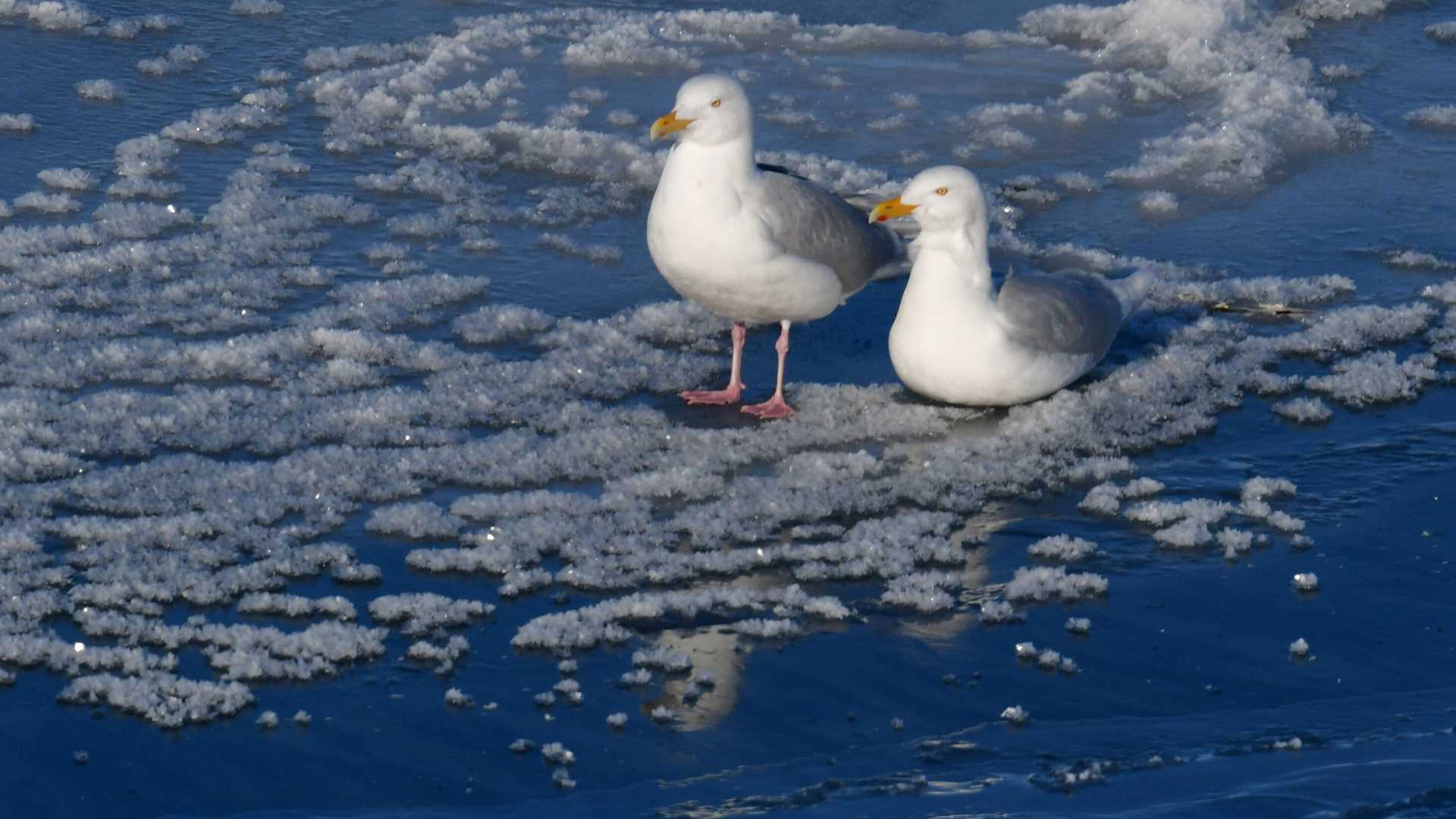 The amount of fresh sea ice in the fjord was one of the striking features of the landscape. About 15 cm formed over the last few days due to low temperatures.