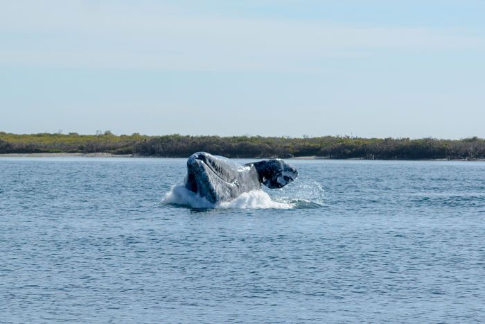 Our last day among the great whales encompassed everything that makes Baja California an enchanting place to explore. Waking up a little earlier this morning, we said goodbye to the eastern gray whales that traverse the Pacific to mate and give birth in the lagoons along the coast of the peninsula. Playful and curious, cow-calf pairs teased our expedition landing crafts with tail splashes and breaches. Once back on the ship, our pilot from San Carlos, Sergio, came aboard once again to guide us through the narrow, navigable channel of Hull Canal to Magdalena Bay. To end the day, we ventured to shore across to the aptly named Sand Dollar Beach on the edge of the cerulean Pacific Ocean. Tomorrow, we may leave Baja California, but Baja California will never leave us.
