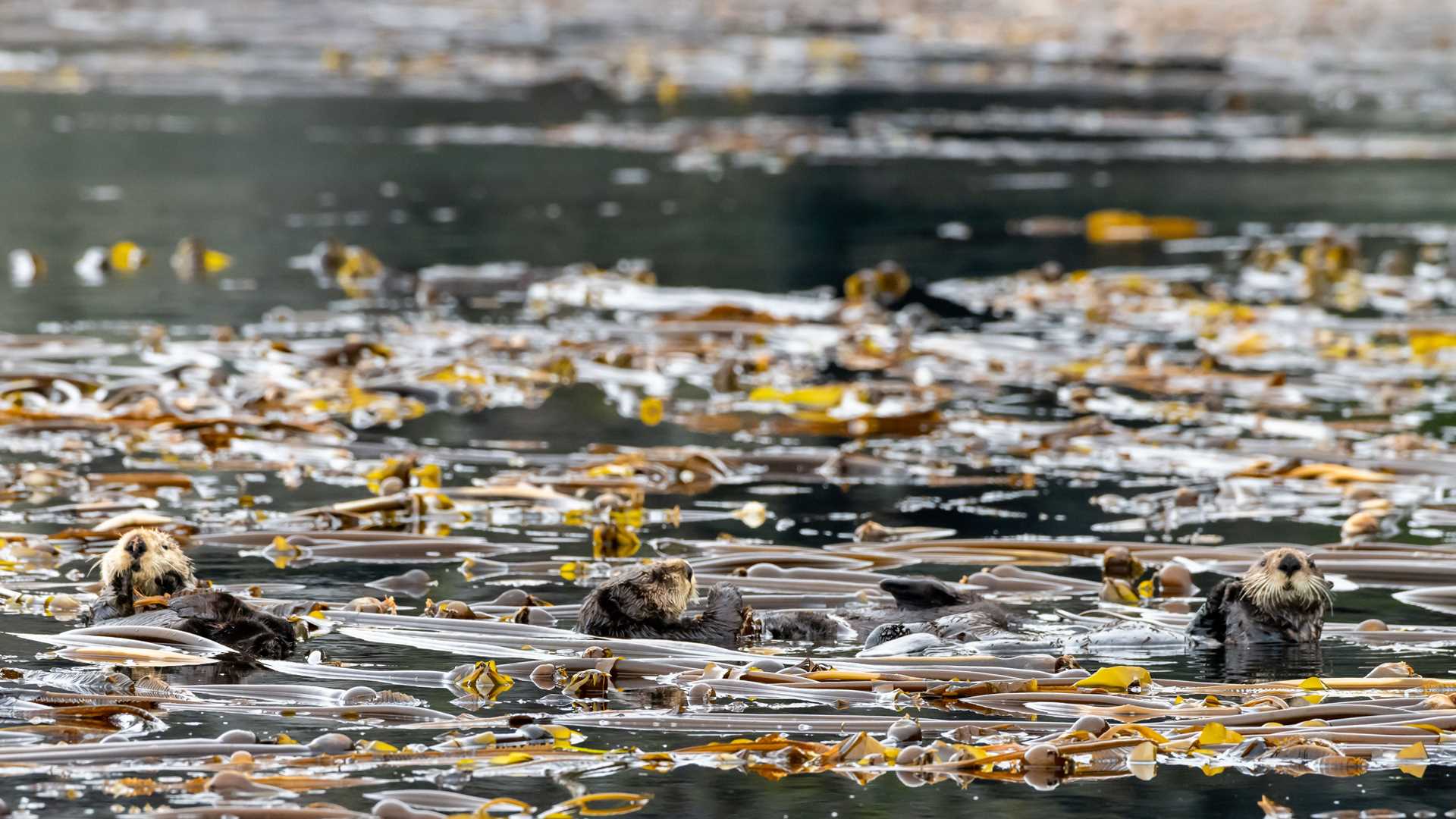 Tufted puffins flew around our heads and pigeon guillemots called out to one another, drawing our attention from the otters. Soon there were Steller sea lions swimming all around our boats—cavorting, snorting, hunting, playing in the currents that swirl through the islands, and bringing fish close to the surface for the sea lions.