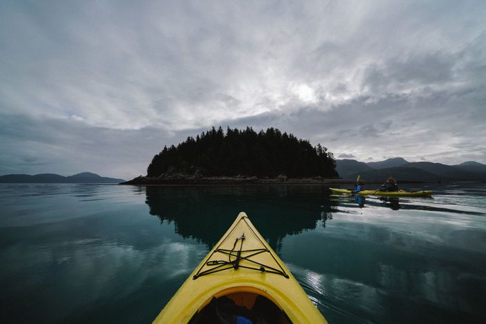 The voyage continues. After navigating through the Lynn Canal and then west to where the Cross Sound and the Gulf of Alaska meet, we anchored in Granite Cove, where our adventures began. In true Lindblad form, we rode Zodiacs from National Geographic Sea Bird to George Island, a former outpost during World War II. Just as we stepped onto the rocky shore, the clouds parted, and sunshine beamed upon us as if to welcome our exploration. Groups set out by foot and by kayak to take in the sights. We found a multitude of colorful lichens in the forest, seaweed on the beach, and sea stars in the tidal zones. No matter where we explored, we were bound to get great photos. Back on board, there was a buzz of chatter during lunch as we compared notes on what we saw. A quick repositioning of National Geographic Sea Bird brought us to “the Hobbit Hole” in the Inian Islands archipelago. Here, the color of the water is a striking teal. It’s the only entrance for the Pacific Ocean to pour nutrient-rich waters into the northern reaches of Southeast Alaska, so the chances of seeing marine mammals and seabirds are good. The afternoon Zodiac runs did not disappoint. We saw sea otters, harbor seals, rhinoceros auklets, and bald eagles…oh my! As we headed back to the ship in our Zodiacs, a light, cool drizzle began and gave way to a brilliant rainbow, uninterrupted by the buildings, traffic, or crowds we’re accustomed to. Lucky for us, we have a couple more days for moments like this one on our floating home.