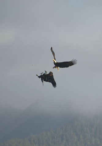 Early this morning, the National Geographic Sea Lion cruised slowly through Icy Strait, on her way towards her morning anchorage at the Hobbit Hole, just inside Cross Sound. During the early morning hours our ship remained quiet, waiting for slack water to make the passage through the Inian Islands and into the quiet and protected waters of the Hobbit Hole. Once inside, the Sea Lion anchored and was ready for morning activities. Icy Strait connects Cross Sound and the Gulf of Alaska with the waterways of Southeast Alaska. Through the tiny entrance of the Inian Islands, all the tidal waters entering the north end of Southeast Alaska pass (tides sometimes of over 25 feet) pour around these islands often creating standing waves. Because of this extraordinary and enormous flushing and upwelling of salt water, it is a smorgasbord of food for a myriad of predators who anxiously await the feast that is presented every six hours during the tidal changes. During this early summer season, added to the tidal upwellings, the seasonal salmon are returning to spawn. The salmon are moved by the very same tides and currents, which provides yet another large food supply for all those ready to harvest! Steller sea lions, bald eagles, killer whales, a variety of gulls, sea otters, and harbor porpoise are all present and benefiting from the abundant nutrients provided by the northern waters of Southeast Alaska.