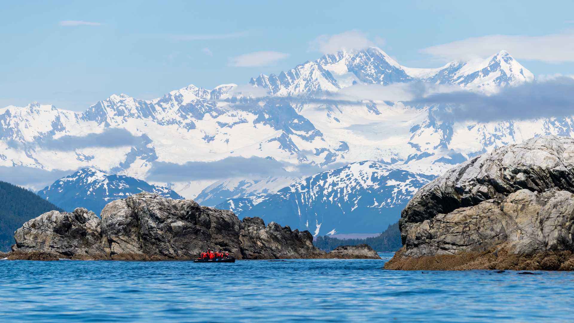 What a day! We woke up this morning with a high cloud ceiling as we approached the Inian Islands for a morning of Zodiac cruising. The ship’s anchor dropped, and Zodiacs were launched. We boarded the Zodiacs and headed out just as the clouds parted, revealing the Fairweather Range and a brilliant blue sky. We explored around the northern island of the Inians. Sea otters sheltered within the kelp forests, holding onto their pups and cleaning their fur. Steller sea lions growled and groaned as they sparred with one another on the rocks. Older bull sea lions rested farther away trying to get a break from the ruckus. Bald eagles soared over our heads as we craned to see their silhouettes. Pigeon guillemots squeaked from nests hidden in the steep cliff crevices. The Inian Islands delivered an amazing morning full of wildlife and action.