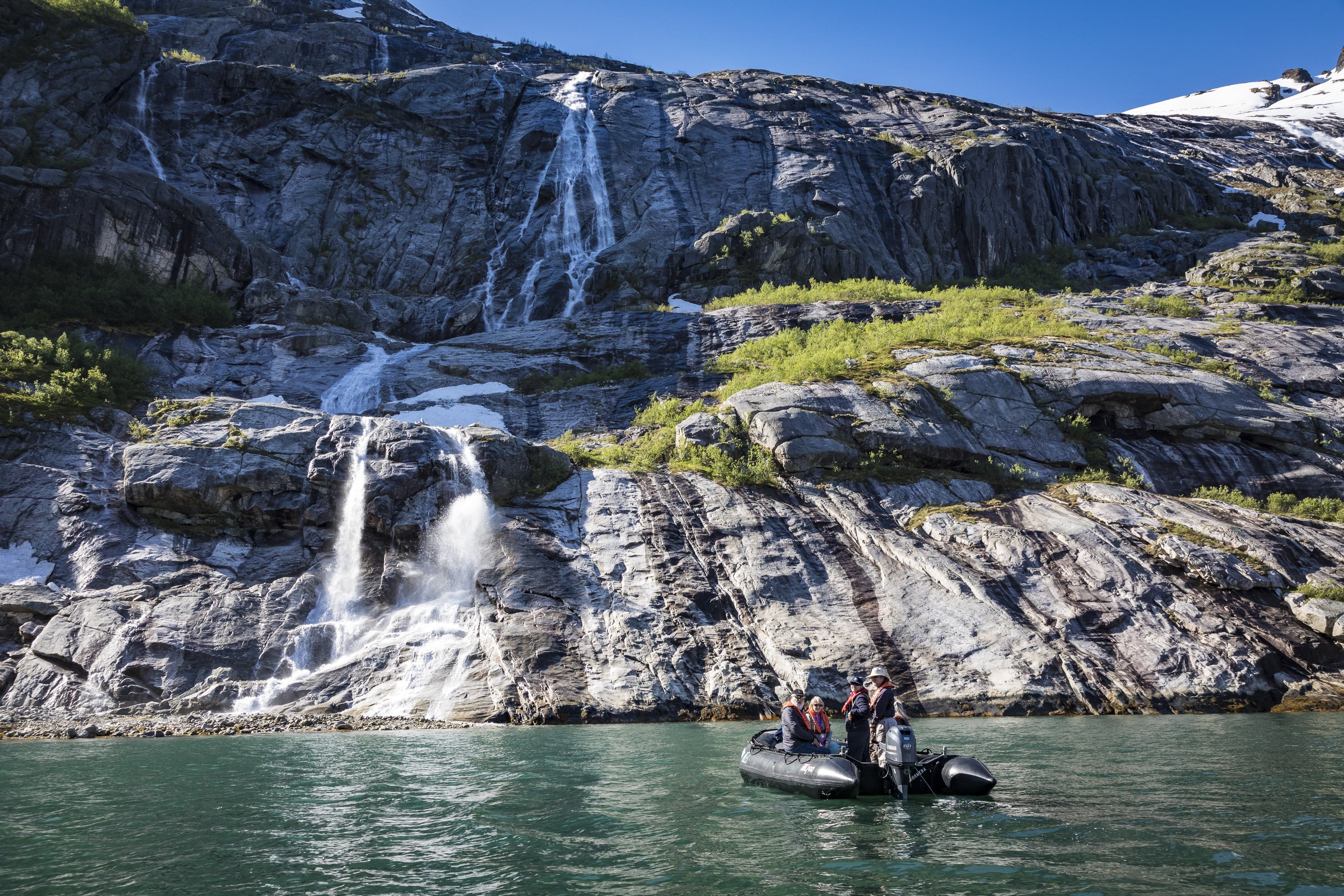 After exploring the glaciers and open waters of the northern Inside Passage, we sailed south through the night and returned to the starting point of our journey, Baranof Island. This island, along with Admiralty to the east and Chichagof to the north, is home to one of the highest densities of brown bears in the world. To search for evidence of the bears as they begin their yearly salmon feast and continue our exploration of the temperate rainforest, we anchored in Kelp Bay to kayak and hike the shoreline throughout the morning. Later in the afternoon, we welcomed Dr. Andy Szabo of the Alaska Whale Foundation to learn more about ongoing research taking place in Alaska on the unique bubblenet feeding behavior we witnessed earlier in the trip. Only in Alaska can you experience the forest, salmon, bears, and whales all in one day.